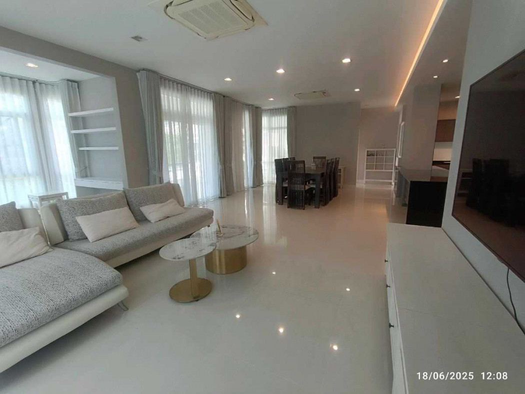 Single house for rent at Mantana Bangna Km. 7, 335 sq m, 1 ngan, 24 sq wah :: Highlights :: - Land area: 124 sq wah - Usable area: 335 sq m - House age: 5 years - 4 bedrooms with en-suite bathrooms - Office / living room / dining room - Fully equipped kitchen: electric stove, oven, range hood, microwave, dishwasher, refrigerator - Maid's room with bunk bed, washing machine, and laundry area - North-facing frontage - 4-car parking space + EV charging station - Fully furnished: TV, sofa, 8-seat wooden dining table Property Information Asset Code: L083991 Property Type: Single House Land Size: 124.00 sq wah Usable Area: 335.00 sq m Number of Floors: 2 Bedrooms: 4, Bathrooms: 5, Living Room: 1, Kitchen: 1 Parking: 4 cars Facilities: CCTV 24-hour security Fitness Center Swimming Pool Jacuzzi :: Details: - Land Size: 1 ngan 24 sq wah - Area: 335 sq m - Type: 4 bedrooms, 5 bathrooms - Number of Floors: 2 :: Project Details: - Project Name: Mantana Bangna Km. 7 Coordinates: http://maps.google.com/maps?q=13.642063,100.666464 Price: 140,000 Baht per month Interested? Contact: eraholding Contact number Line: @erathailand