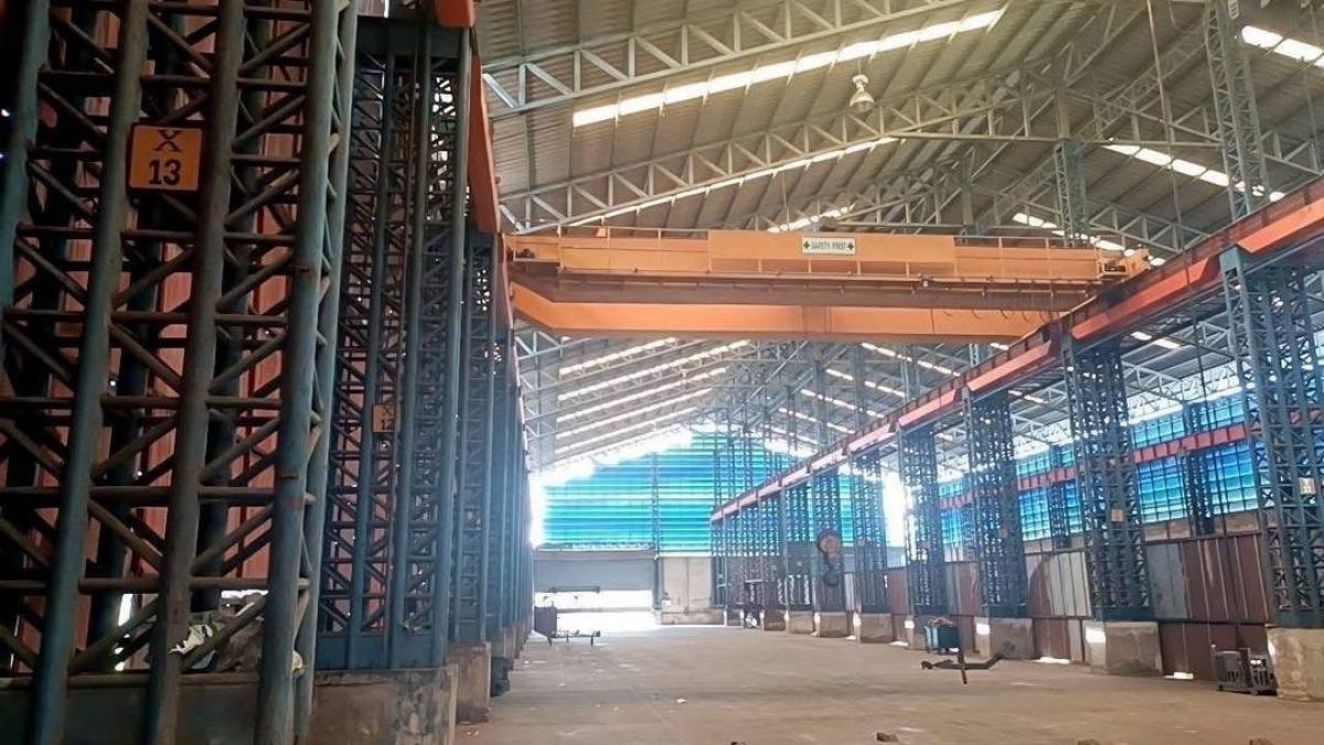 Warehouse for rent at Mahachai, Samut Sakhon 1,000 sq m for placing steel . Details - Total area 1000 square meters - Rental price 180 baht per square meter Minimum lease contract 3 years . - Place steel to support a weight of 30 tons, 40 tons per square meter - 2 cranes, 25 tons with 30 tons . 📞Interested/ask for details at Contact number