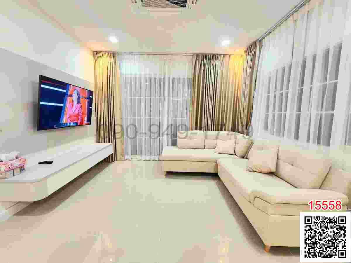 Rent 2-story detached house, Grandio Bangna Village Km. 5 15558 Size 36 sq m., usable area 140 sq m. 4 bedrooms, 3 bathrooms Fully furnished and electrical appliances Rental price 73,000 baht/month Fa