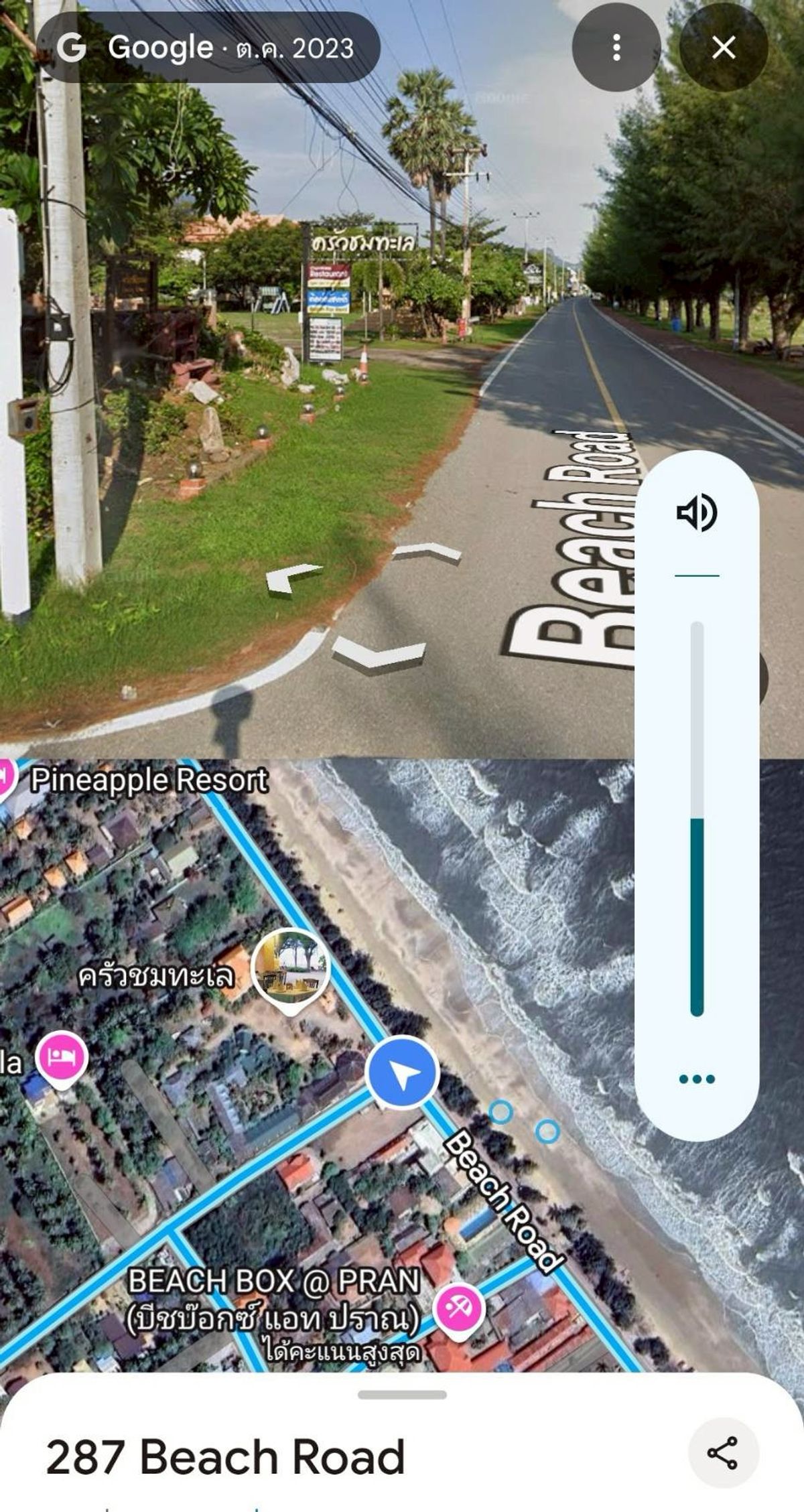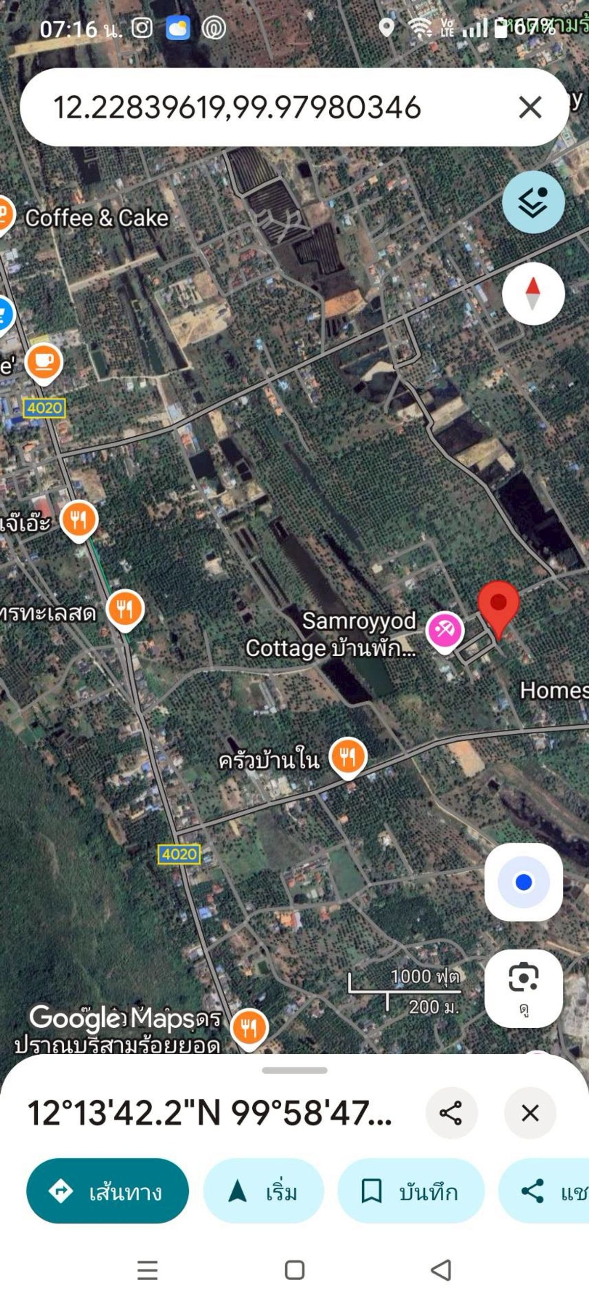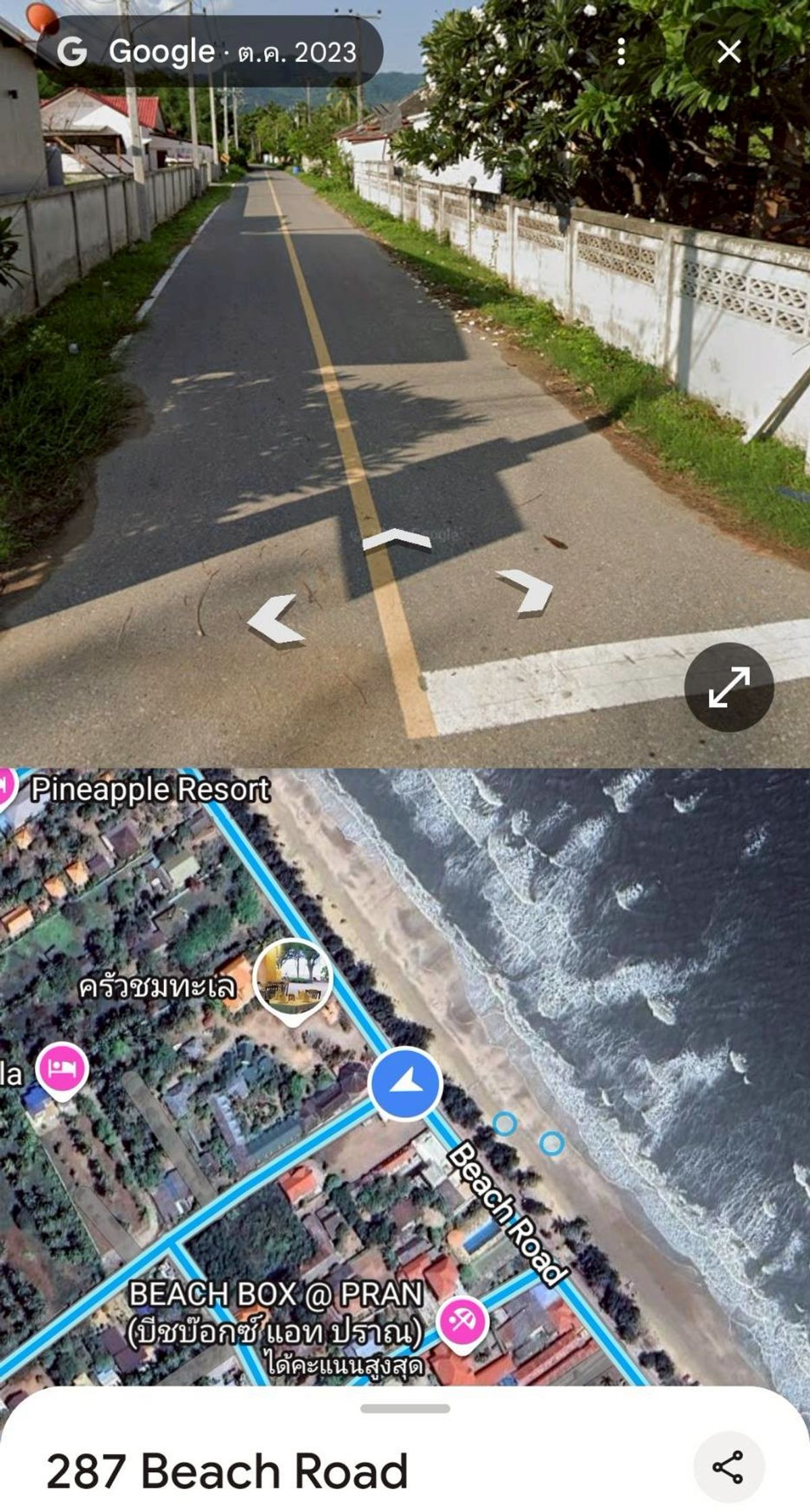 Land for sale, 50 sq m, near Sam Roi Yot Beach, 1.4 kilometers, in front of the beach, alley near Krua Chom Talay. If you enter the other way, you will enter Soi Sam Roi Yot 23, near 7-11 Phu Noi, 1.8