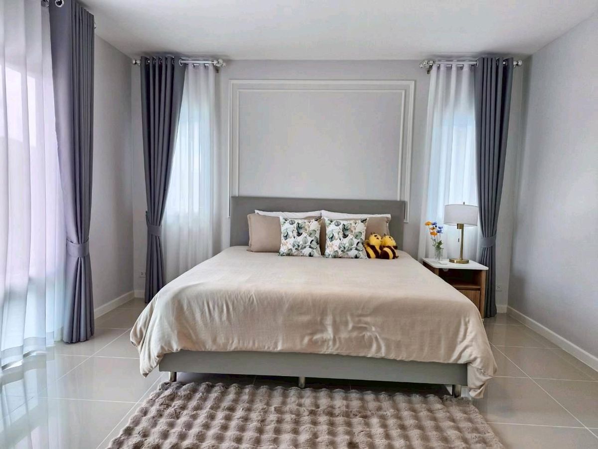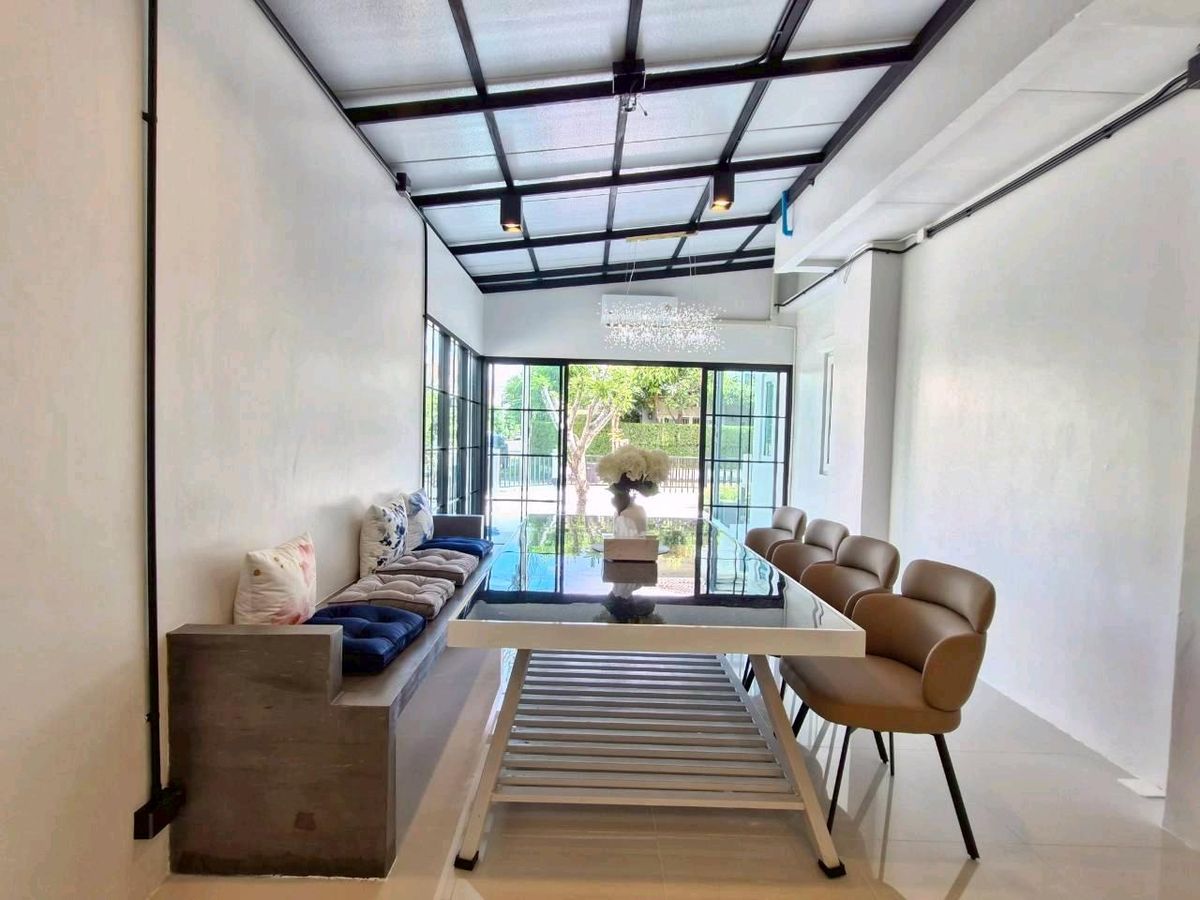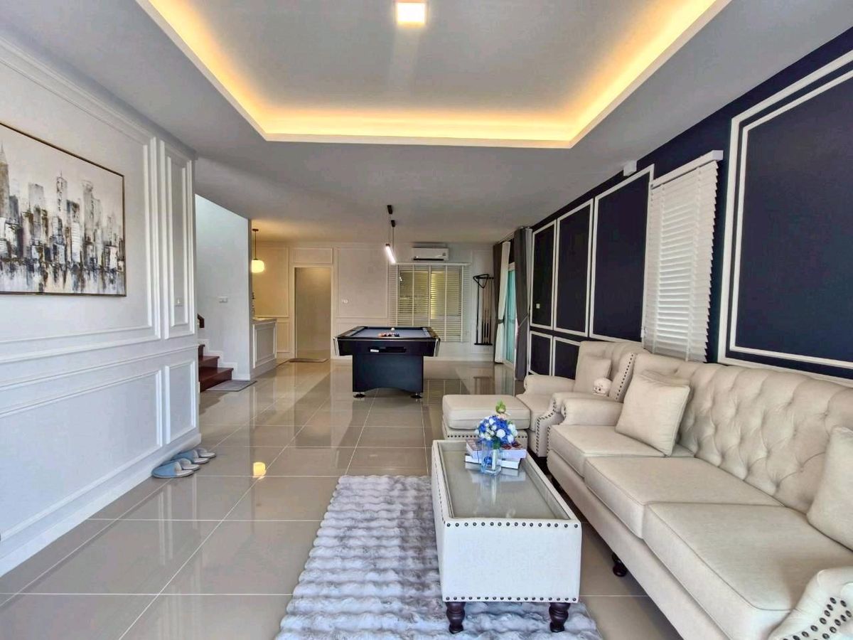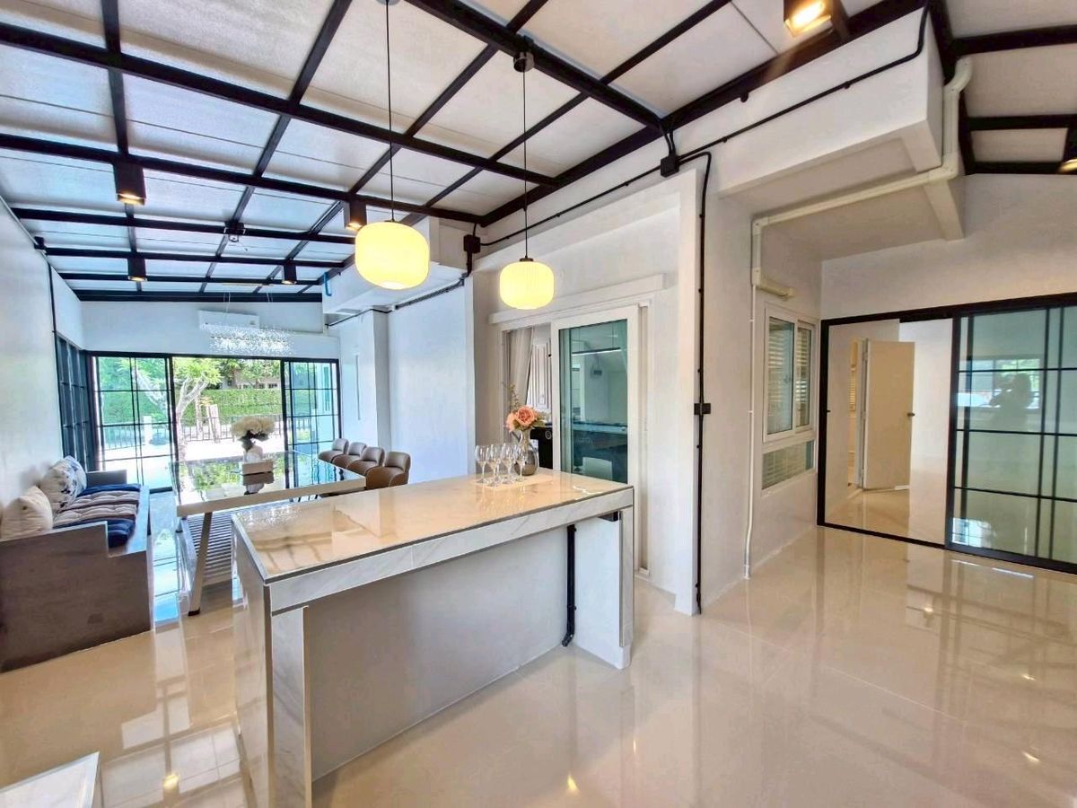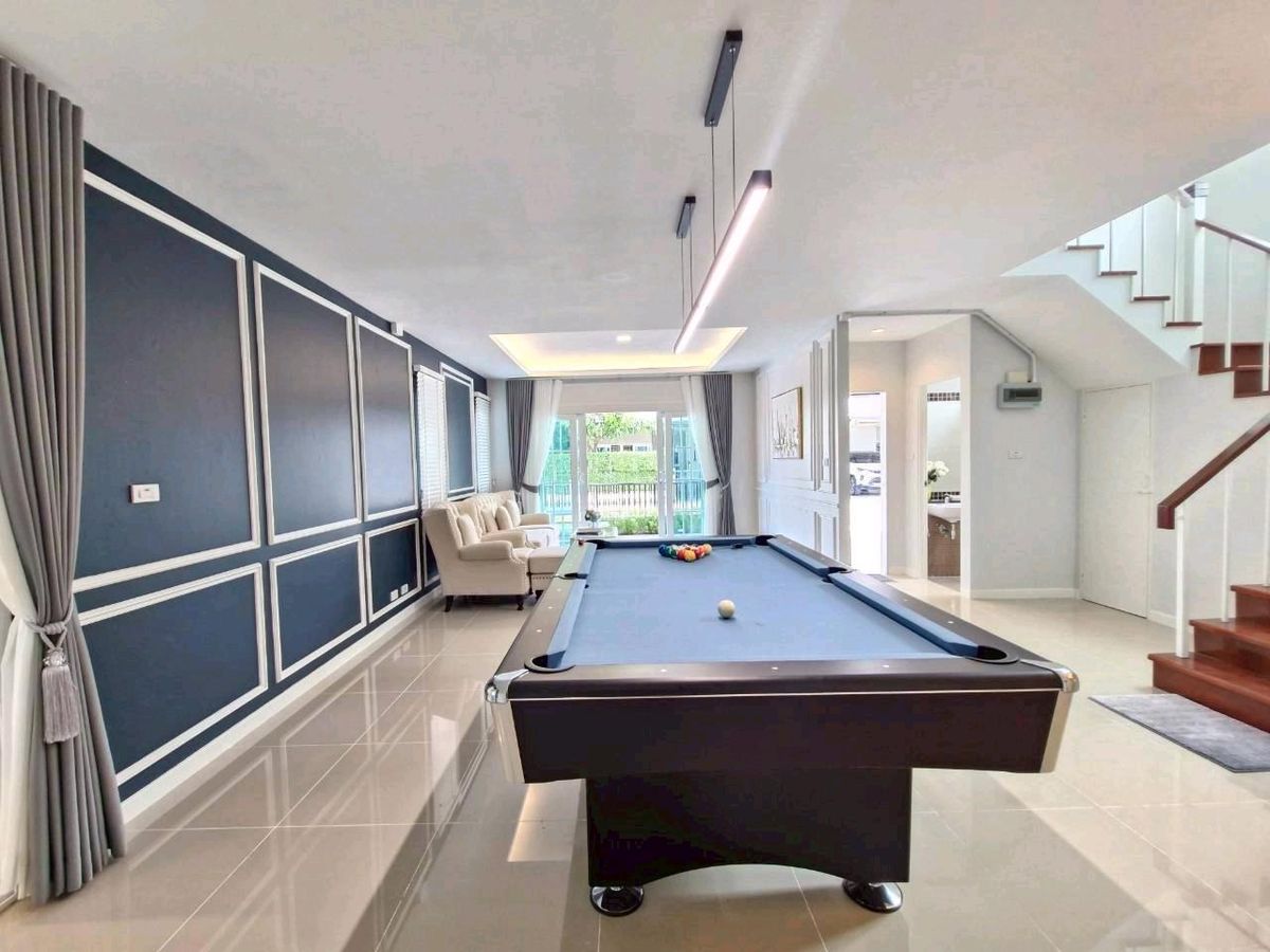 #Single house Hathairat #Praphasap Village Newly renovated house, good location, outside corner room, number 18/102 Soi 8A on land of 50.5 sq m., usable area of over 260 sq m. 4 bedrooms, 3 bathrooms, adding an extension to the kitchen + dining room, spacious, spacious, perfect 💥 at a great price, just 5.69 million 👉The house faces south 👉Common fee 1000 baht/month 👉House age 7 years There is an extension for laundry and ironing room on the side. Add a verandah in front of the house to sit and feel the breeze, chill, look at the garden on the side - Install 3 air conditioners, install a pump tank - Double layer corrugated tape curtains throughout the house - Decorate the interior walls with cornice moldings - Complete with furniture throughout the house for sports lovers. We set up a pool table. To hang out and relax at home A house that gives more than just home. Available at Baan Praphasap Ramindra-Hathairat 39 For more details , call. Contact number Fon Contact number Num or click the link below to add Line 👉👉https://lin.ee/TBju1kHB Find a house easily. Just click👇👇 www.doodeehome.com 🌟Free loan submission service. There is no charge. Ready to give advice with a professional team