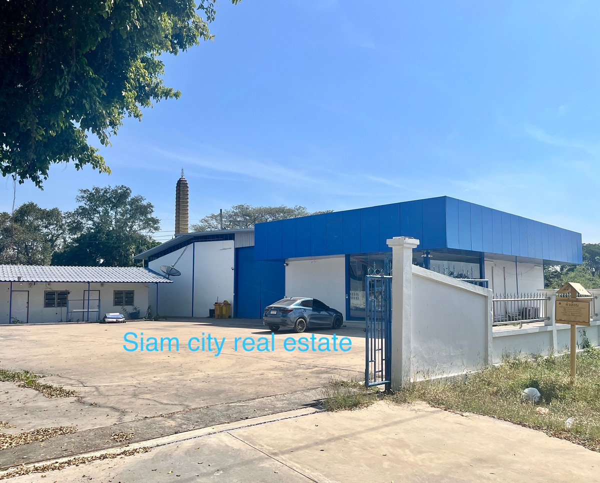 Land for sale with buildings for offices and warehouses. With staff housing 🏚 in a good location, next to Bang Pa-in Road - Luang Por O Intersection, Muang Mu Subdistrict, Mueang District, Sing Buri P