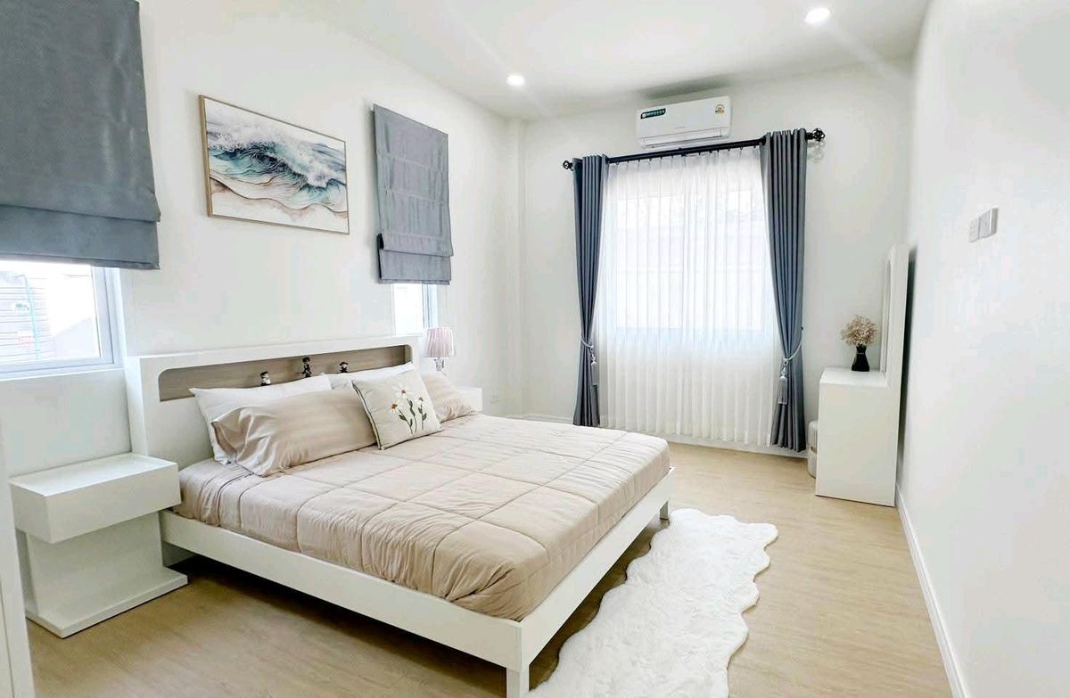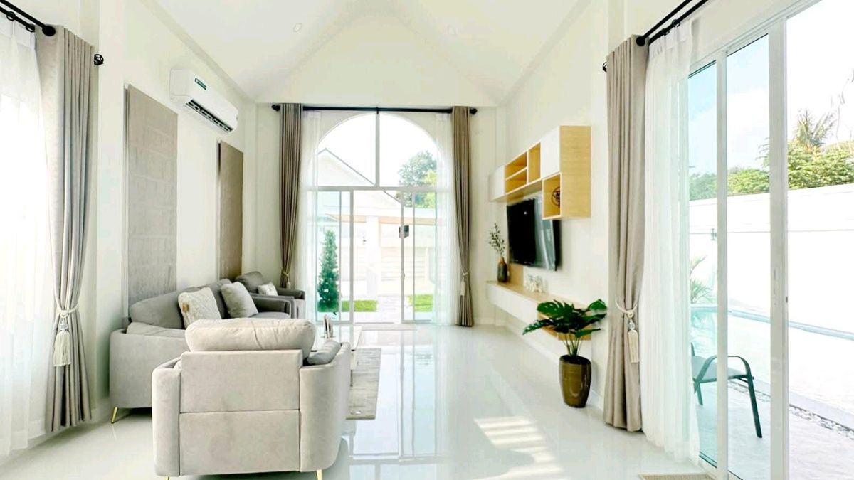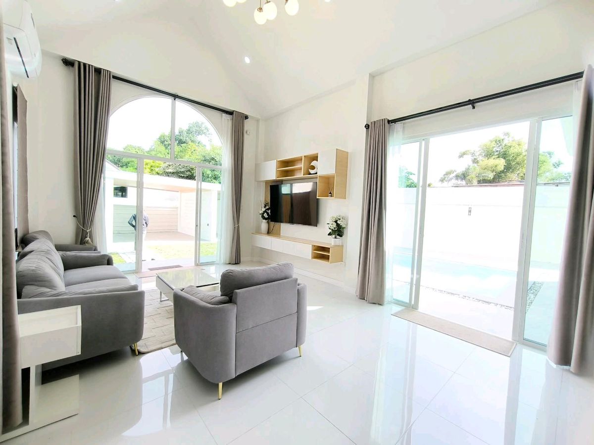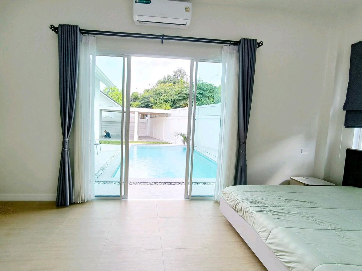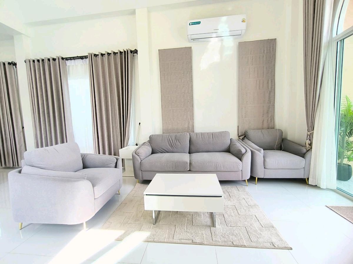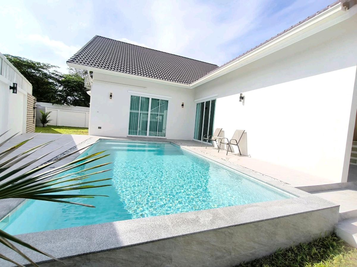 🏡 Pool Villa (PATTAYA) | 60,000 THB / month #DirectOwner #CoAgwelcome 📍Location: Near Mabprachan Reservoir and Pong Municipality, Pattaya ✅ Land area: 114 sq.wah | Living area: 210 sq.m. ✅ 3 bedrooms, 4 bathrooms | 2 parking spaces ✅ Saltwater swimming pool #Furniture & Appliances ☑️ 5 air conditioners, TV, refrigerator, washing machine, microwave, oven ☑️ Sofa, dining table, curtains, built-in furniture #Facilities ▪️ Fully equipped kitchen with stove, hood, and sink; hot & cold water system ▪️ 2,000-liter water tank ▪️ Electric remote gate, landscaped garden around the house Contact / ติดต่อ → 📞 Contact number 📲 Line ID: put_wadee 💬 WhatsApp: Contact number