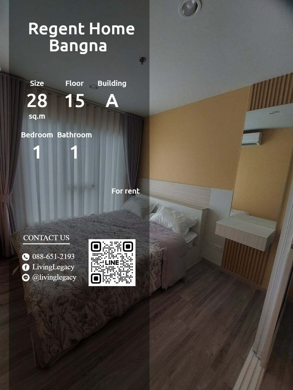 🏠 T3UGBU Condo for rent, Regent Home Bangna, 28 sq m, 15th floor, Building A, 1 bedroom, 1 bathroom ✨ Ready to move in immediately! Beautiful room, fully decorated Ready to move in! 🔍Details - Number