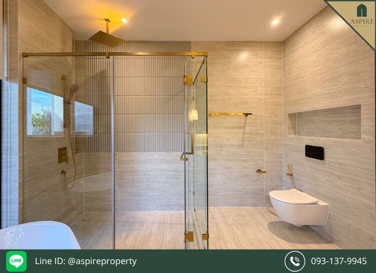 [For Sale or For Rent] 3-Storey Detached House, BuGaan Krungthep Kreetha with Private Elevator Property Code: TP25025042 • Land size 86 sq. wah, Usable area 540 sq.m. • 4 BR, 6 BA • 1 Spacious Living Room with 7m high ceiling • 1 Family Room on the 2nd floor with 7m high ceiling • 1 Thai Kitchen, 1 Western Kitchen • 1 Maid’s Room • 4 Parking spaces • Private courtyard garden • Facilities include: Swimming Pool, Fitness, 24-hour security Nearby Places • Leading International Schools: Brighton / Wellington / Ruamrudee (RIS) / British Mandarin International School (BMIS) • Easy access to Sirat Expressway • Near MRT Yellow Line, Si Kritha Station • Convenient travel to Suvarnabhumi Airport • Close to community malls • Near Samitivej Hospital and Ramkhamhaeng Hospital Selling Price 65 MB (Transfer Fees 50/50) Rental Price: 420,000 THB/month (Minimum 1-year lease) For viewing, contact Tel. : Contact number WhatsApp : Contact number Line ID : @aspireproperty Email : Contact email Aspirethailand.com