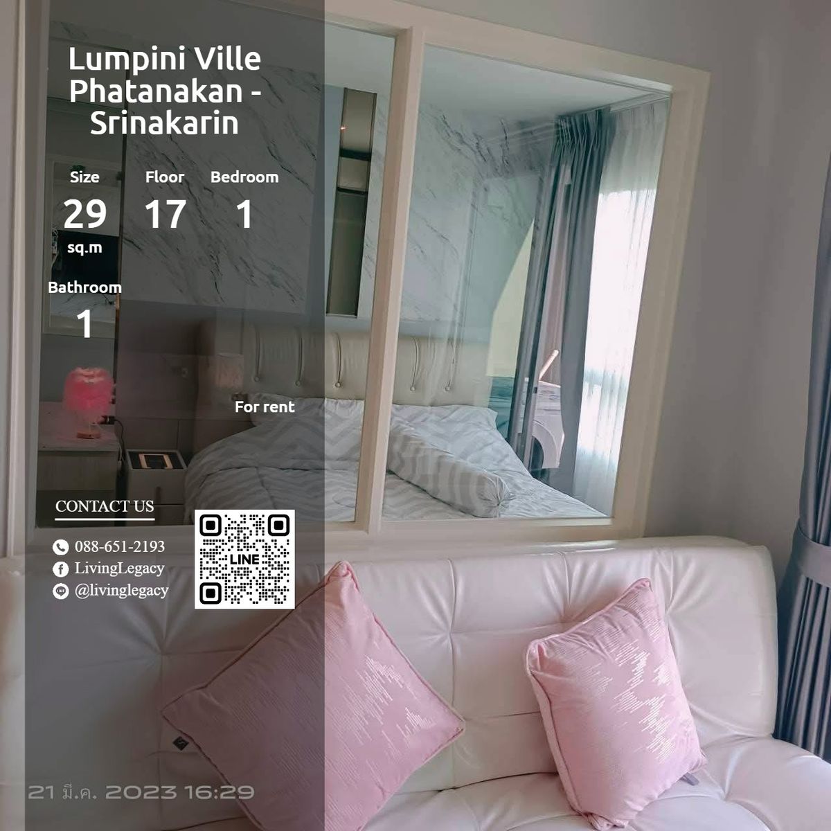 T4031U Condo for rent Lumpini Ville Phatanakan - Srinakarin 29 sq m, 17th floor line id : @livinglegacy