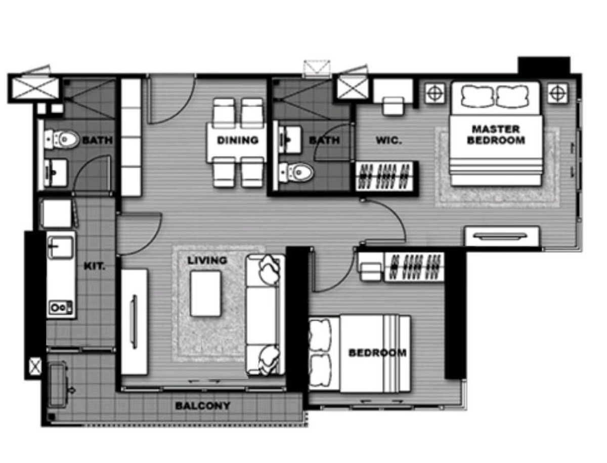 For sale and rent The Tree Rio Bang O Station, 14th floor, corner room, size 61.17 sq m. 2 bedrooms 2 bathrooms 1 living room 1 kitchen 2 balconies 1 parking space fully furnished selling for 6,238,30