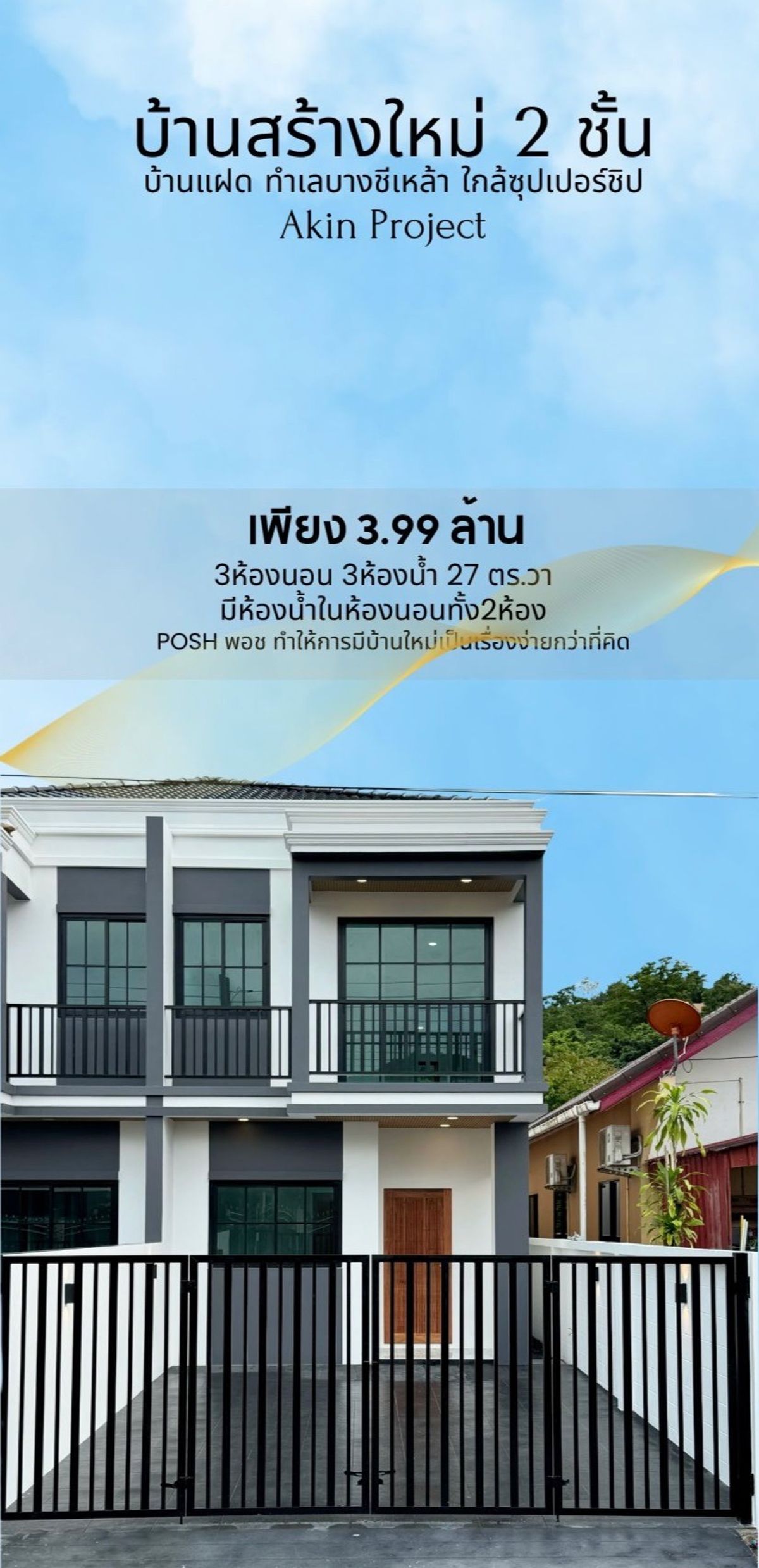 Two-storey semi-detached house, newly built, first hand , Bang Chi location. Near super chip AKIN PROJECT only two units with a newly built semi-detached house, 3 bedrooms, 3 bathrooms 1 bedroom on the ground floor. and 2 bedrooms on the 2nd floor Whats special is that both bedrooms above have private bathrooms. Newly built house with a strong structure. Location near the city Near the Rajabhat - Koh Kaew - Bypass intersection that comes with a balcony area to add space to the back of the house. Addition of parking space Kitchen counter ready to use Free gas stove and range hood Water pump Value that you can touch 📌 Location https://maps.app.goo.gl/ZP1riqcKjrRXBuG26 ┏━━━━━━━━━━━━━┓ Offered Price 3,990,000.- ┗━━━━━━━━━━━━━┛ Newly Built 2-Storey Twin Houses Location: Bang Chi Lao, near Super Cheap, Rassada AKIN PROJECT Only 2 units available! Newly built twin houses featuring: • 3 Bedrooms, 3 Bathrooms • 1 Bedroom on the Ground Floor • 2 Bedrooms on the Second Floor, each with a private ensuite bathroom Highlights: • Strong, durable construction • Prime location near the city • Close to Rajabhat Intersection – Koh Kaew – Bypass Road • Includes a balcony area • Extended backyard space • Covered carport area • Fully equipped kitchen counter Free! • Gas stove and range hood • Water pump A great value you can truly afford! Chaiyapruek Land & House, Chalong Newly renovated detached corner house in the prime Chalong location Featuring 4bedrooms, 2bathrooms, and 1 home office on a 213.6 sqm living area. Built-in parking, kitchen, and office space with a landscaped garden corner. Good location, Good choice for living or investment ⚫️ #Poshbuyroomstaypropertycompany 🕳️ Credit check service • Calculate loan ability • Calculate monthly installment rate 🕳️ We excel in sales and adeptly manage the trading operations for international clientele ➖➖➖➖➖➖➖➖➖➖➖➖➖➖➖➖➖ ☎️ More information, Please do not hesitate to contact us Contact number Khun Nan Contact number Admin Contact number K.Ping (eng.) Line: @roomstay Ask for information via LINE. Its more convenient. Theres an admin to take care of you https://lin.ee/aLaoTiw [ POSHBYROOMSTAYPROPERTY.CO.,LTD ] 📌 See reviews of beautiful houses at https://www.tiktok.com/@poshbyroomstay?_t=8kTog2ffG59&_r=1
