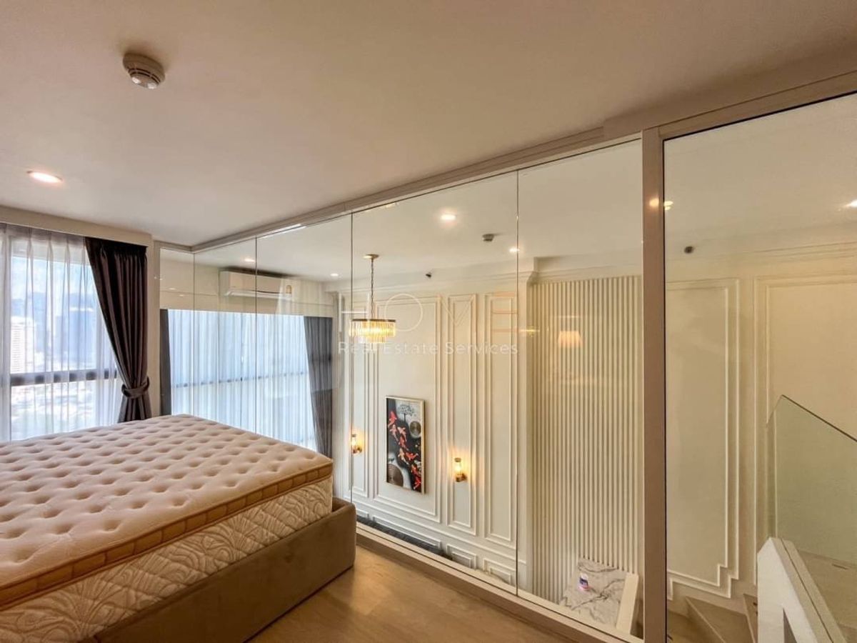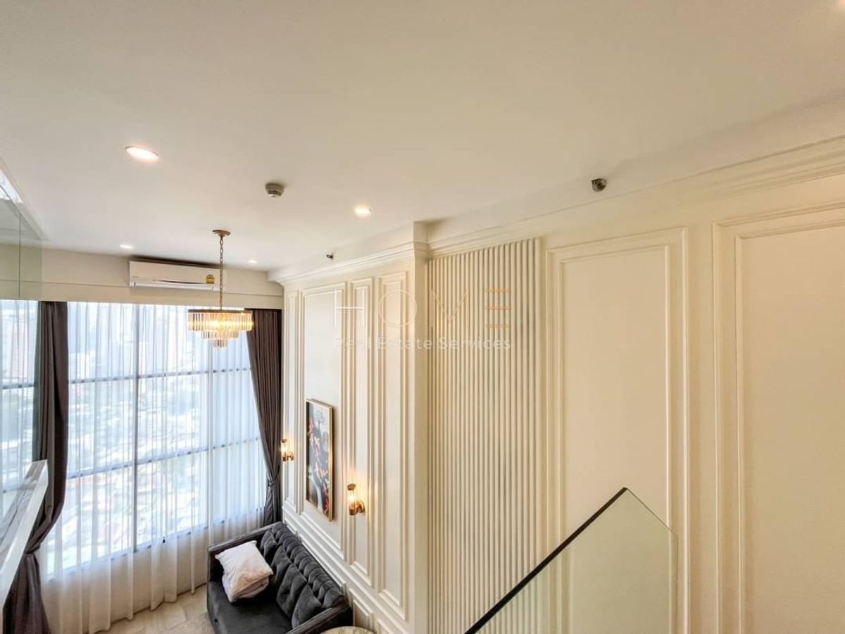 Duplex 1 large bedroom + 1 bathroom + 1 multi-purpose room - bedroom with glass partition High privacy - 30th floor, beautiful view - Size 44 sq m. - Ceiling height 4.4 meters, airy - Bedroom next to window. Can see day and night views from the bed - Hall with window Fully decorated room with over 15 electrical appliances, you can just carry your bags - Smart TV - Air conditioner in every room - Built-in kitchen - Electric induction stove and hood - Microwave - Refrigerator 10.6 cu. - Bed with 6 foot mattress - Large wardrobe - Dressing and makeup table - Washing machine Clothes dryer - Water heater - L Shape sofa - Dining table - Water filter - Equipment to decorate the room beautifully Common areas and facilities -Lobby,Auto Parking Lobby -15th FL. Garden -Therapy Pool & Lap Pool -Steam, Sauna -Fitness Mezzanine -Media Club, Metropolitan Club -Sky Garden -Gardens around the project - Near BTS Chong Nonsi Project map https://goo.gl/maps/1Y3fcvj8oooGLh8c9 Contact LINE ID : scopz