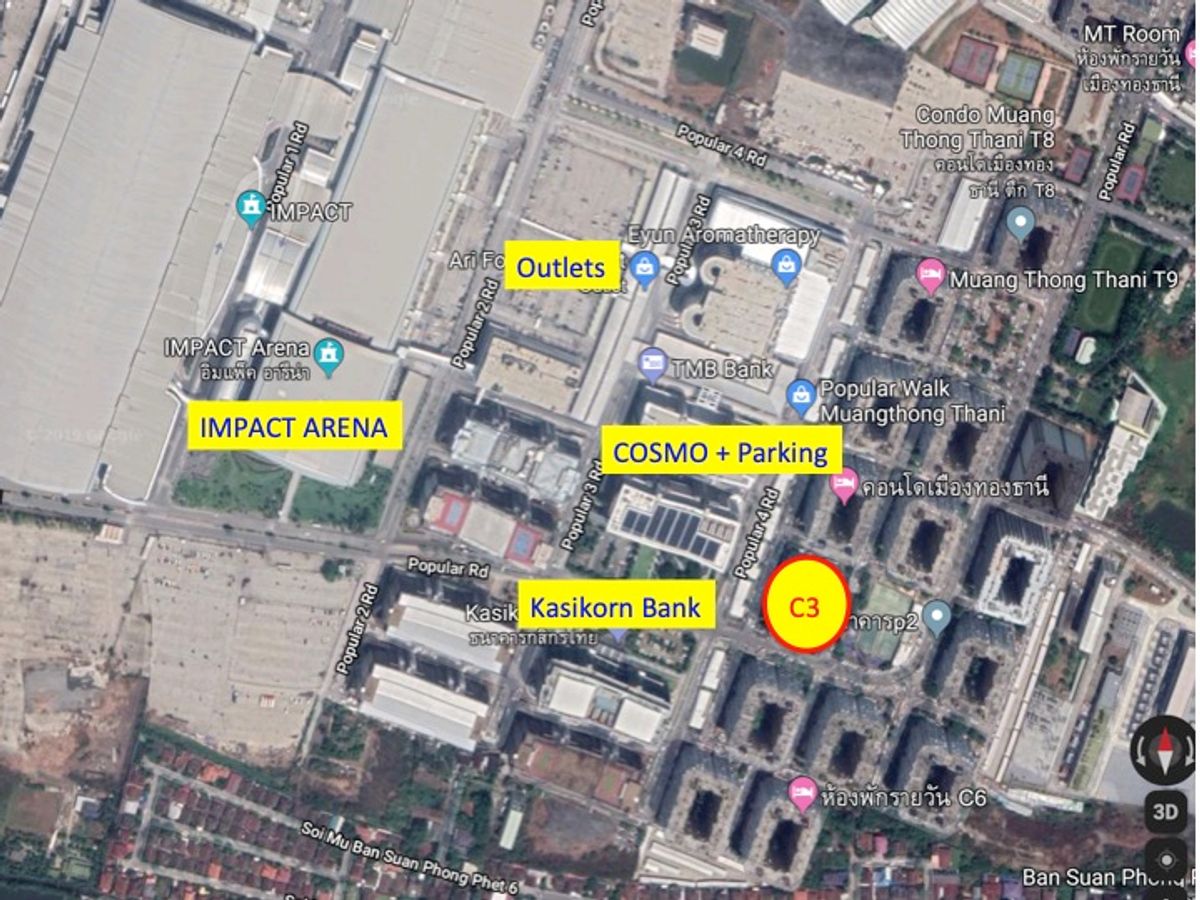 Compact room at the heart of Muang Thong Thani (IMPACT exhibition centre). Fully furnished: Fridge-freezer, microwave, Double bed, Air condition, Built-in Wardrobe and storage, Desks, heated shower, sofa, high quality blackout curtains. (Happy to provide if need more amenities.) Facilities: 24/7 securities and CCTV, Laundry service in building (at a fee) Ideal location for IMPACT Arena & Exhibition hall, Cosmo Bazaar, Kasikorn Bank, Go-kart racing track, etc. 30 mins from DMK international airport. Contact: lineID ra88999 Link to Attractions: Cosmo Bazaar http://www.cosmobazaar.biz/en/surrounding Impact Arena Exhibition and Convention Center ****No pet please & For non-smoker only
