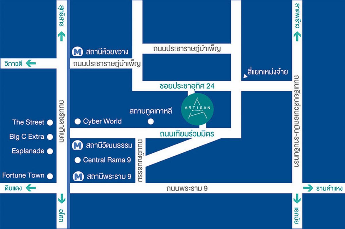 For Sale Condo Artisan Ratchada @MRT Thailand Cultural Centre 28.21 sq.m 16th floor Tower B, Fully furnished, Ready to move in . Location : - Near MRT Thailand Cultural Centre Station - Near Huai Kwan