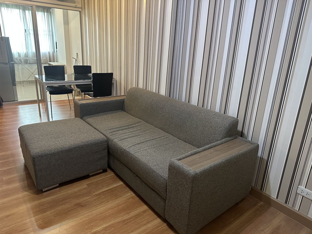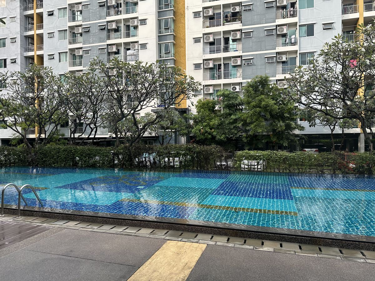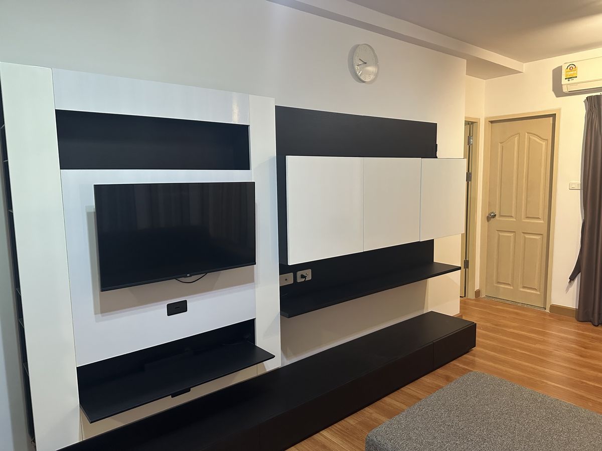 Address: Soi Pracha Uthit 6, Pracha Uthit Road, Huai Khwang Subdistrict, Huai Khwang District, Bangkok 10310 This 8-story condominium project offers convenient access, surrounded by trees and gardens, with ample parking. The unit is located in Building 3, the same building as the management office, making it easy to receive packages. The building is secure with 24-hour maintenance staff. Situated on the 5th floor, the unit faces outward, offering a refreshing green view and good ventilation. It does not receive direct sunlight, making it comfortable throughout the day. The well-proportioned space is 45 square meters and includes: 1 Bedroom, 1 Bathroom, 1 Living Room, 1 Kitchen +++ Furnishings and Appliances Included +++ - Shelving, bedroom set, and sofa from SB Furniture - Dining table and shoe rack - Xiaomi TV 32-inch - Refrigerator and Microwave - Water heater with shower - Curtains and blinds Rental Price: 15,000 Baht/month (Includes common area fees) Minimum 6-month contract 2-month security deposit + 1-month advance rent Travel Information: Condominium: Supalai City Resort (Ratchada-Huai Khwang) Near MRT Huai Khwang Station Accessible by car from multiple routes including Ratchadaphisek Rd., Huai Khwang Rd., Meng Jai Intersection, and Rama 9 Rd. Motorbike taxi stand in front of the project for convenient travel. +++ Facilities +++ - Swimming pool (25 x 8 meters) - Fitness center (50.4 sq.m.) - Gardens (over 4,559 sq.m. of green space) - 24-hour security guards and project CCTV - Fingerprint scan and Key Card access for project and building entry - Fire protection system with Smoke & Heat Detector and Fire Alarm - Parking for 1 car and 1 motorcycle - On-site laundry machines and drinking water vending machines - Ready for immediate installation of TRUE Hi-speed Internet (pre-wired). +++ Nearby Places +++ - 7-Eleven (in front of the project): 50 m. - MRT Huai Khwang Station: Approx. 1.3 km.