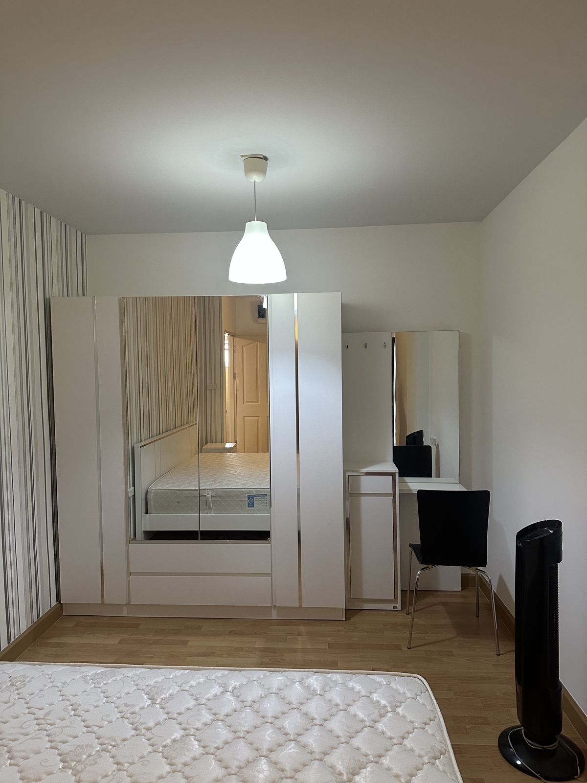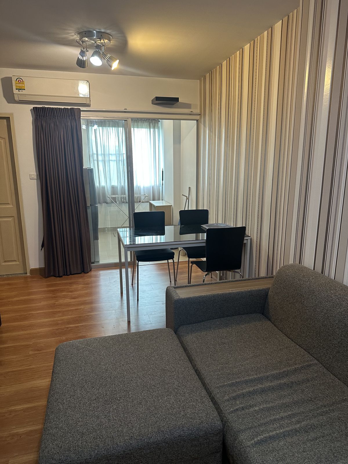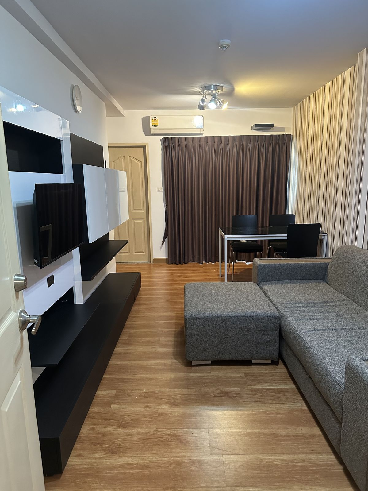 Address: Soi Pracha Uthit 6, Pracha Uthit Road, Huai Khwang Subdistrict, Huai Khwang District, Bangkok 10310 This 8-story condominium project offers convenient access, surrounded by trees and gardens, with ample parking. The unit is located in Building 3, the same building as the management office, making it easy to receive packages. The building is secure with 24-hour maintenance staff. Situated on the 5th floor, the unit faces outward, offering a refreshing green view and good ventilation. It does not receive direct sunlight, making it comfortable throughout the day. The well-proportioned space is 45 square meters and includes: 1 Bedroom, 1 Bathroom, 1 Living Room, 1 Kitchen +++ Furnishings and Appliances Included +++ - Shelving, bedroom set, and sofa from SB Furniture - Dining table and shoe rack - Xiaomi TV 32-inch - Refrigerator and Microwave - Water heater with shower - Curtains and blinds Rental Price: 15,000 Baht/month (Includes common area fees) Minimum 6-month contract 2-month security deposit + 1-month advance rent Travel Information: Condominium: Supalai City Resort (Ratchada-Huai Khwang) Near MRT Huai Khwang Station Accessible by car from multiple routes including Ratchadaphisek Rd., Huai Khwang Rd., Meng Jai Intersection, and Rama 9 Rd. Motorbike taxi stand in front of the project for convenient travel. +++ Facilities +++ - Swimming pool (25 x 8 meters) - Fitness center (50.4 sq.m.) - Gardens (over 4,559 sq.m. of green space) - 24-hour security guards and project CCTV - Fingerprint scan and Key Card access for project and building entry - Fire protection system with Smoke & Heat Detector and Fire Alarm - Parking for 1 car and 1 motorcycle - On-site laundry machines and drinking water vending machines - Ready for immediate installation of TRUE Hi-speed Internet (pre-wired). +++ Nearby Places +++ - 7-Eleven (in front of the project): 50 m. - MRT Huai Khwang Station: Approx. 1.3 km.