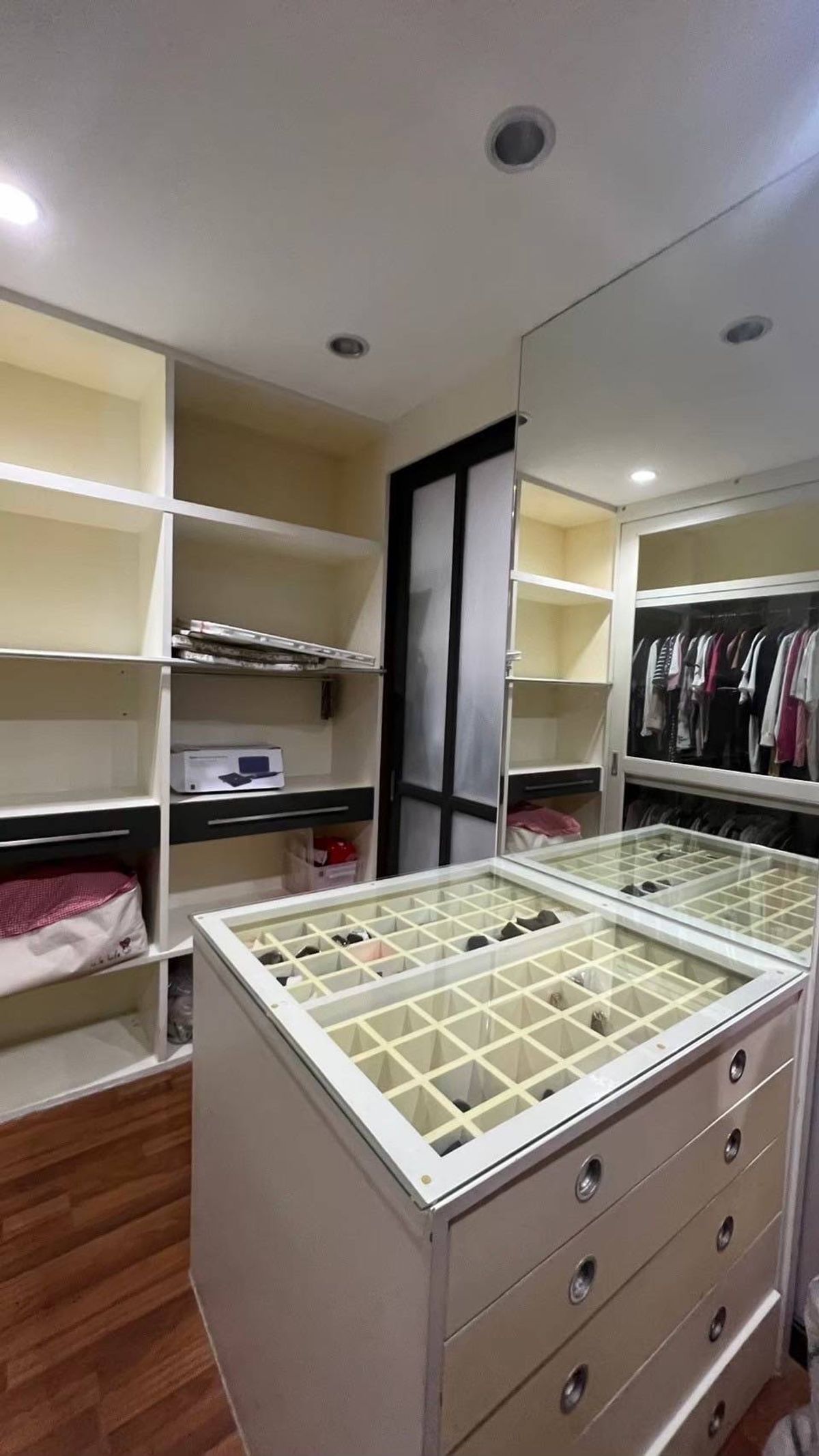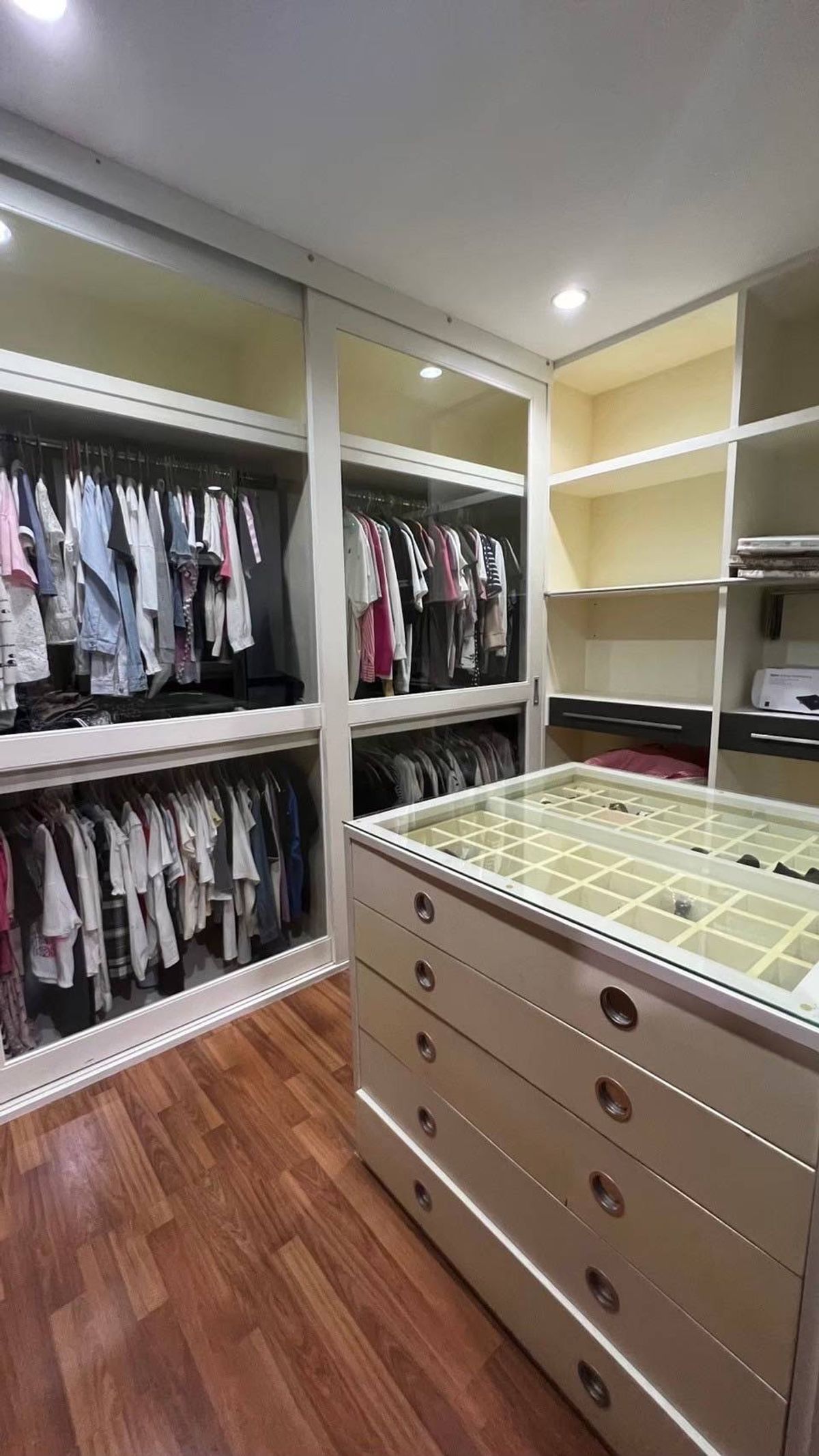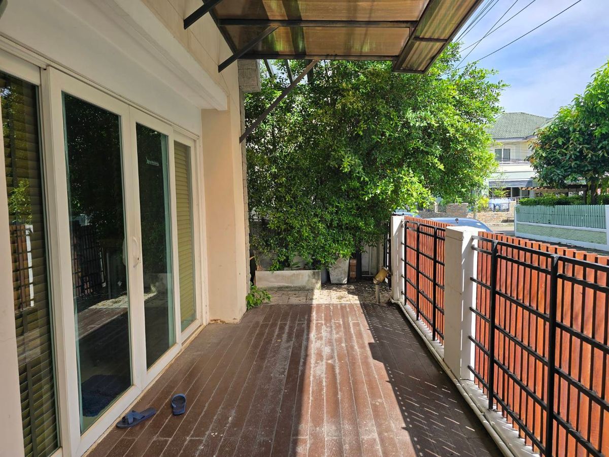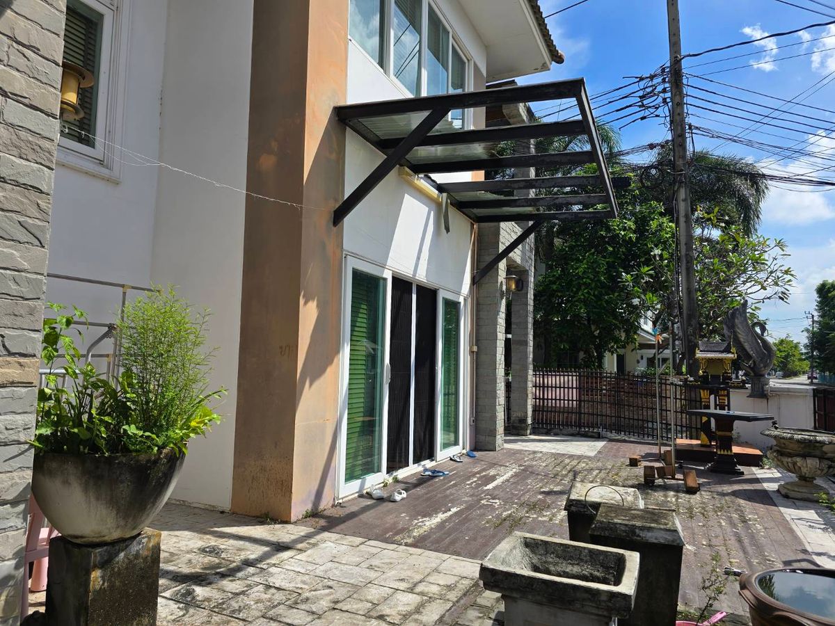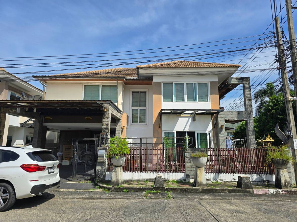 Urgent sale Baan Suan Romklao Suvarnabhumi 67 sq m Selling price 5,500,000 baht (cash purchase) 5,900,000 baht (bank loan) First-hand price is 6,900,000 baht and add another 3,000,000 baht Usable area 200 sq m, can accommodate 2 cars Corner house, 4 bedrooms, 3 bathrooms, 1 living room (has its own bathroom). Upstairs there are 3 bedrooms, 2 bathrooms, 1 Buddha room . Downstairs, 1 bedroom, 1 living room, 1 bathroom, 1 kitchen. Outside there is a maids room connected to the kitchen , to fill the space. Built-in throughout Air conditioning installed in every room