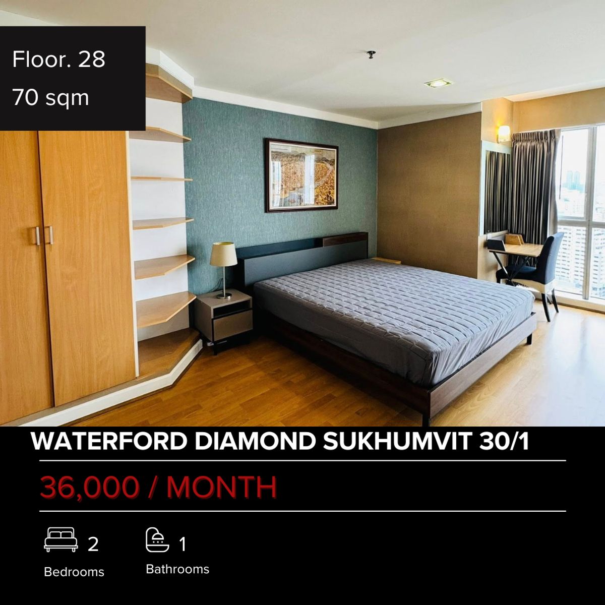 Condo : Waterford Diamond Sukhumvit 30/1 Size : 70 SQM Floor. 28 Type: 2 bedroom 1 bathroom Rent Price : 36,000 Baht Tel. Contact number ( Anda ) WhatsApp Contact number (Anda) Line @285gshuc #WDS3011