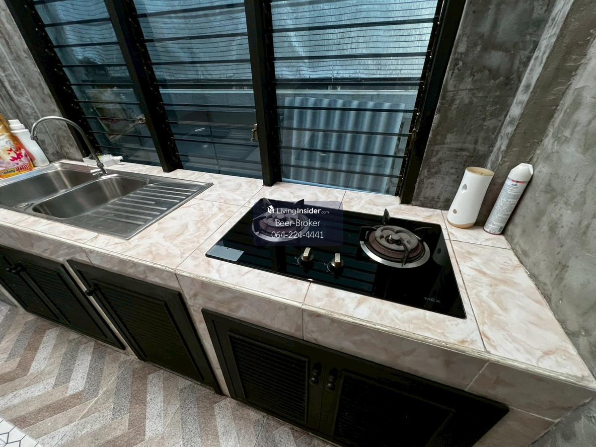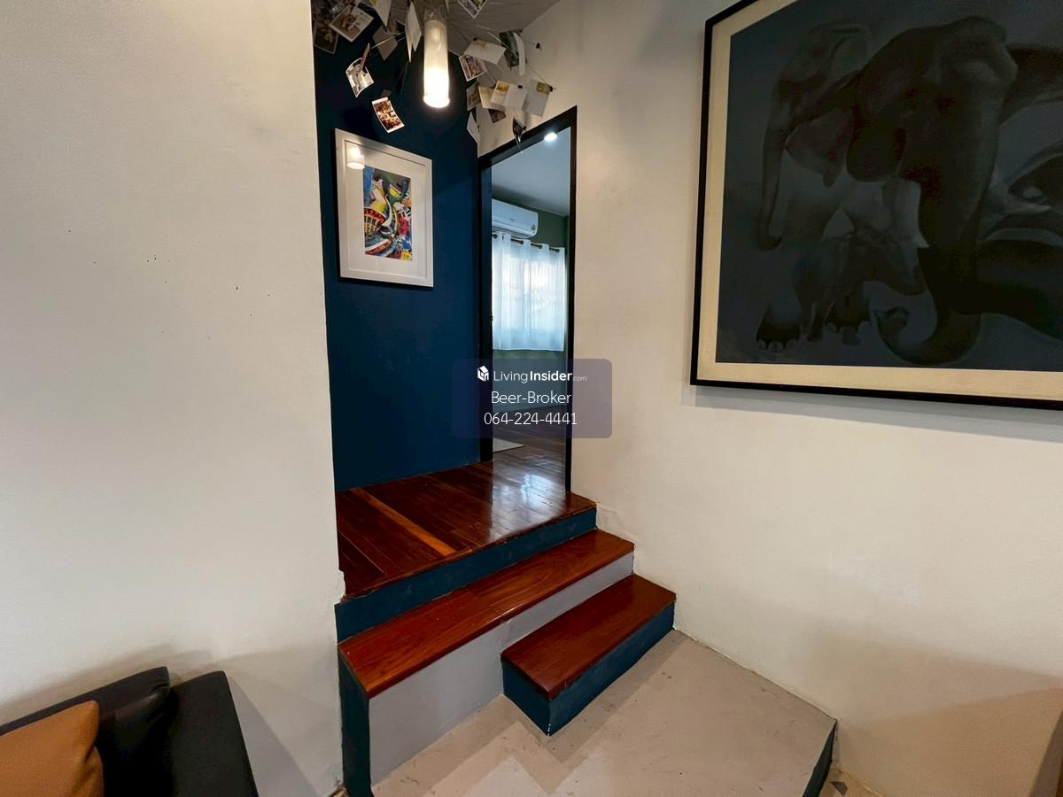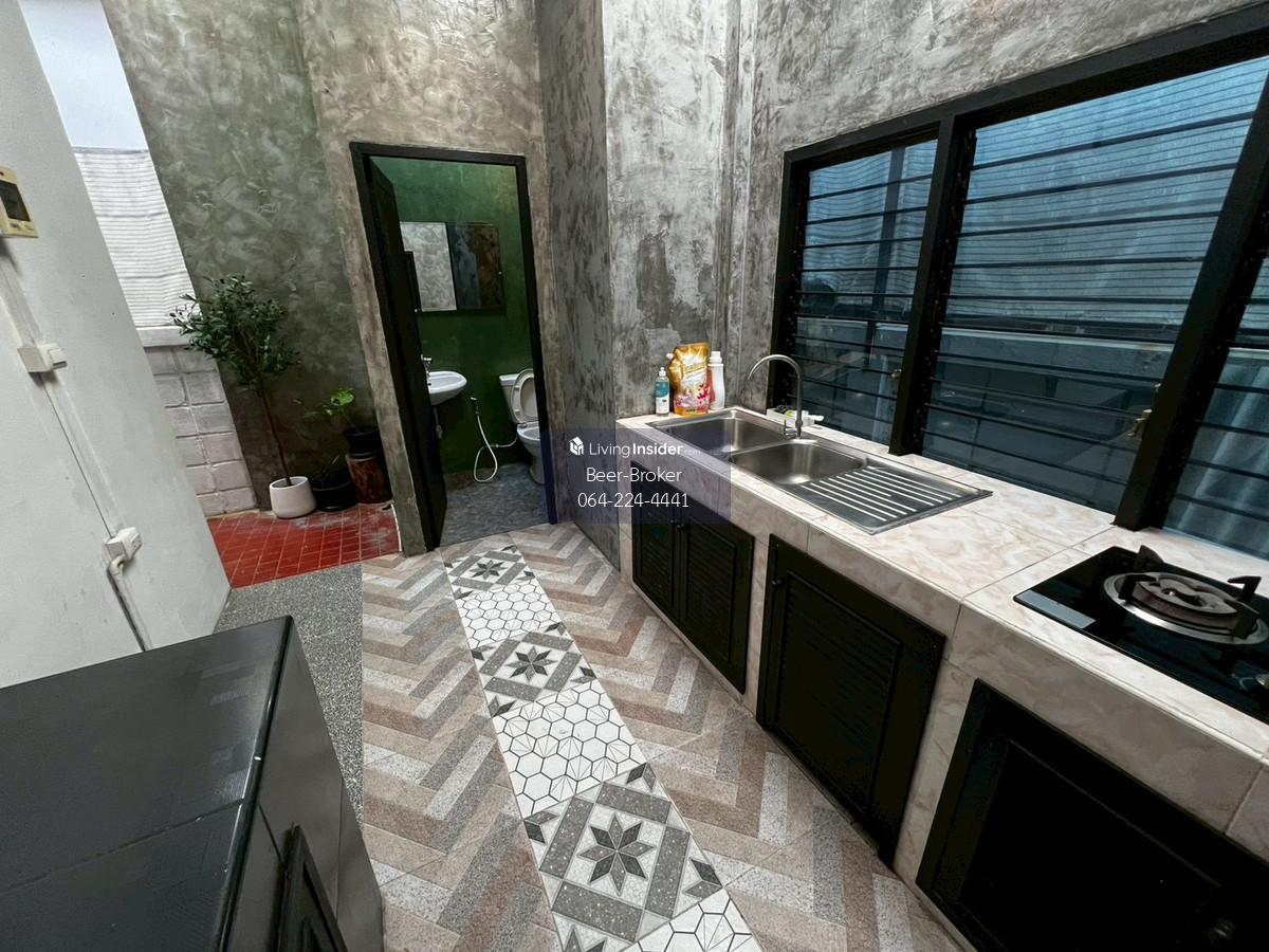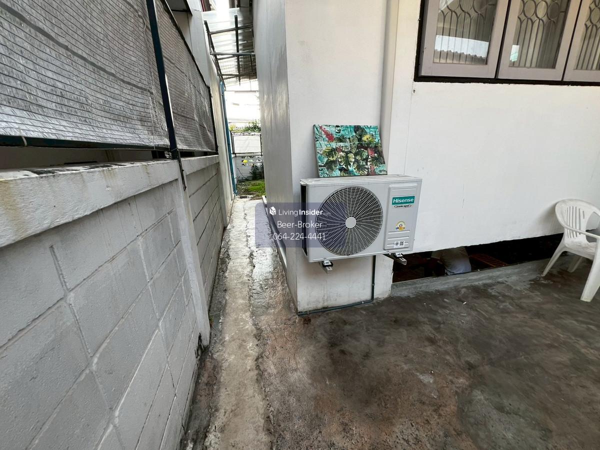 house, suitable for office use, pets allowed, Samakkee Road, near the BTS Skytrain, quiet, peaceful, and safe. Details: - Detached house, suitable for both living and business, in a prime city location near the BTS Skytrain on Tiwanon Soi 52. Resort-style design. - Located right next to Samakkee BTS station, fully operational. - Quiet and safe neighborhood with government employees. Specially decorated with artwork. Beautifully furnished and ready to move in. - Tiwanon Soi 52, 50 meters from the main road. Vejthani Hospital is across the street. - Pets (dogs and cats) allowed; buyer responsible for any damage. - Land size: 44 sq.wah. Usable area: 200 sq.m. - 2 bedrooms, 2 bathrooms - 1 living room, 1 kitchen, 1 rooftop balcony - 1 large sunken room - Parking for 2 cars. 3 air conditioners, 1 refrigerator. - Everything as pictured. For more information, please contact us at Khun Beer : Call Contact number Line ID : @beerbroker (please include @) or Click 👉 https://lin.ee/pqQqdgP At your service.
