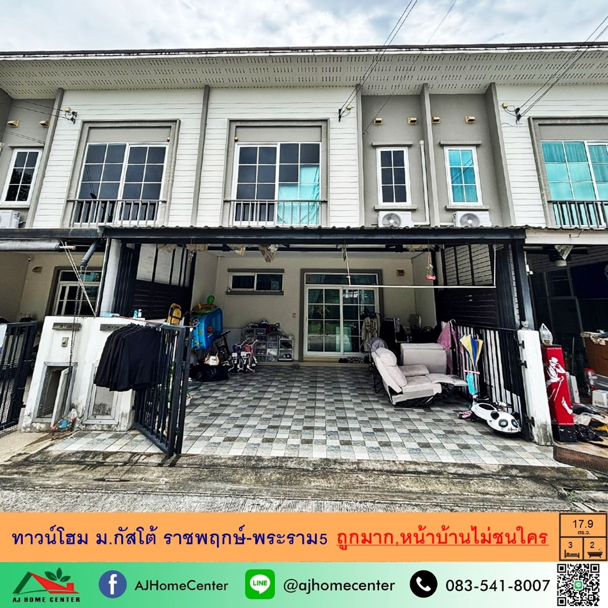 Selling cheap for 2.8 million Townhome 17.9 sq m. Gusto University, Ratchaphruek-Rama 5 In front of the house, dont hit anyone. Free loan arrangement . 2-story townhome, area 17.9 square meters, usable area 106 square meters 3 bedrooms, 2 bathrooms, 1 kitchen, 1 living room, 1 parking space - Free 1 air conditioner, water pump, water tank, wrought iron - Add a roof to the front and back of the house - Add a built-in kitchen - lattice barriers on both sides of the house - Floor covering material: ground floor - granite / upper floor - laminate - Complete facilities within the project - Quality project in the Quality Houses group - The project is near Bang Si Si Intersection and Bang Sri Mueang Intersection. Convenient travel into and out of the city with Nakhon In Road and Ratchaphruek Road - near the Purple Line. Tiwanon Intersection Station and the Purple Line Nonthaburi Intersection Station 1 - Free loan arrangement service by professionals. Facilities > Clubhouse > Fitness > Swimming pool > Public park > Playground > Closed circuit cameras (CCTV) > 24 hour security system .Nearby places > Sirimongkol Market: 500 meters > Bang Sri Mueang Market: 1.4 km. > Tesco Lotus Nakhon In: 1.8 km. > Wat Chaloem Phrakiat Hospital: 3.0 km. > Bang Kruai Hospital: 5.0 km. > The Walk Ratchaphruek: 6 km. > Rama 5 Market: 6.3 km> The Crystal : 6.5 km > Denla School: 6.6 km. > Central Rattanathibet : 9 km. > Major Pinklao: 9.5 km. > Central Westgate : 10.6 km. . If interested, contact Khun To, telephone number Contact number / Contact number / Contact number