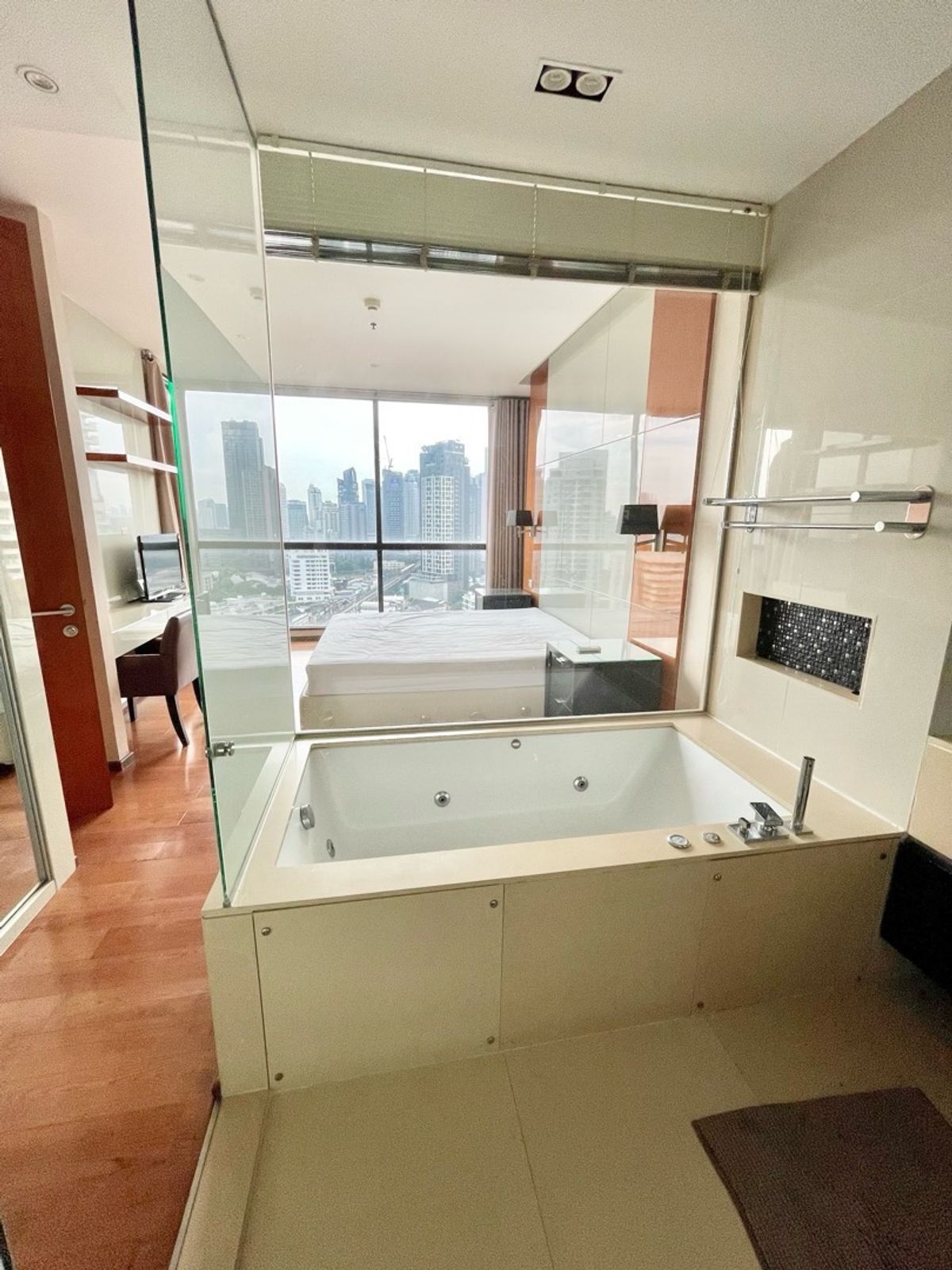 *** ready to move in ****** The Address Sukhumvit 28 (Phrompong BTS station) ***67 sq m floor 21 *** 🛏 2 bedrooms 🛀 2 bathrooms 👩🏻‍💻 High floor with terrace 🍽 Fully-fitted kitchen 🛋 Living room with a superb view on Thonglor ✅ Fully Furnished. It comes with washing machine and dryer. Corner room, very quiet, jacuzzi, big balcony with a wonderful view on Thonglor Building administration team is very friendly & supportive. Swimming pool and well-equipped gym on 31st floor Contact line : kwanza_09 Call : Contact number