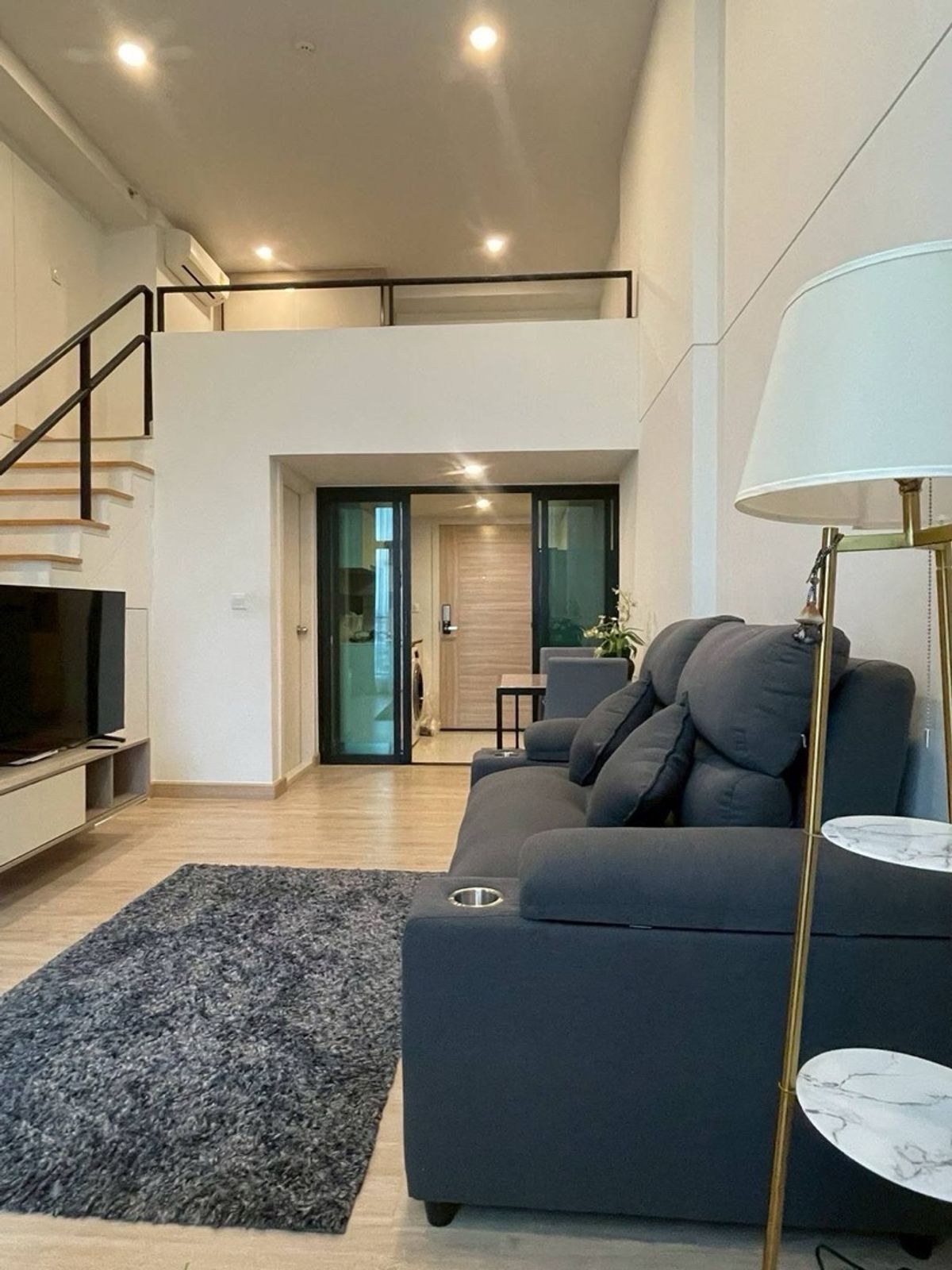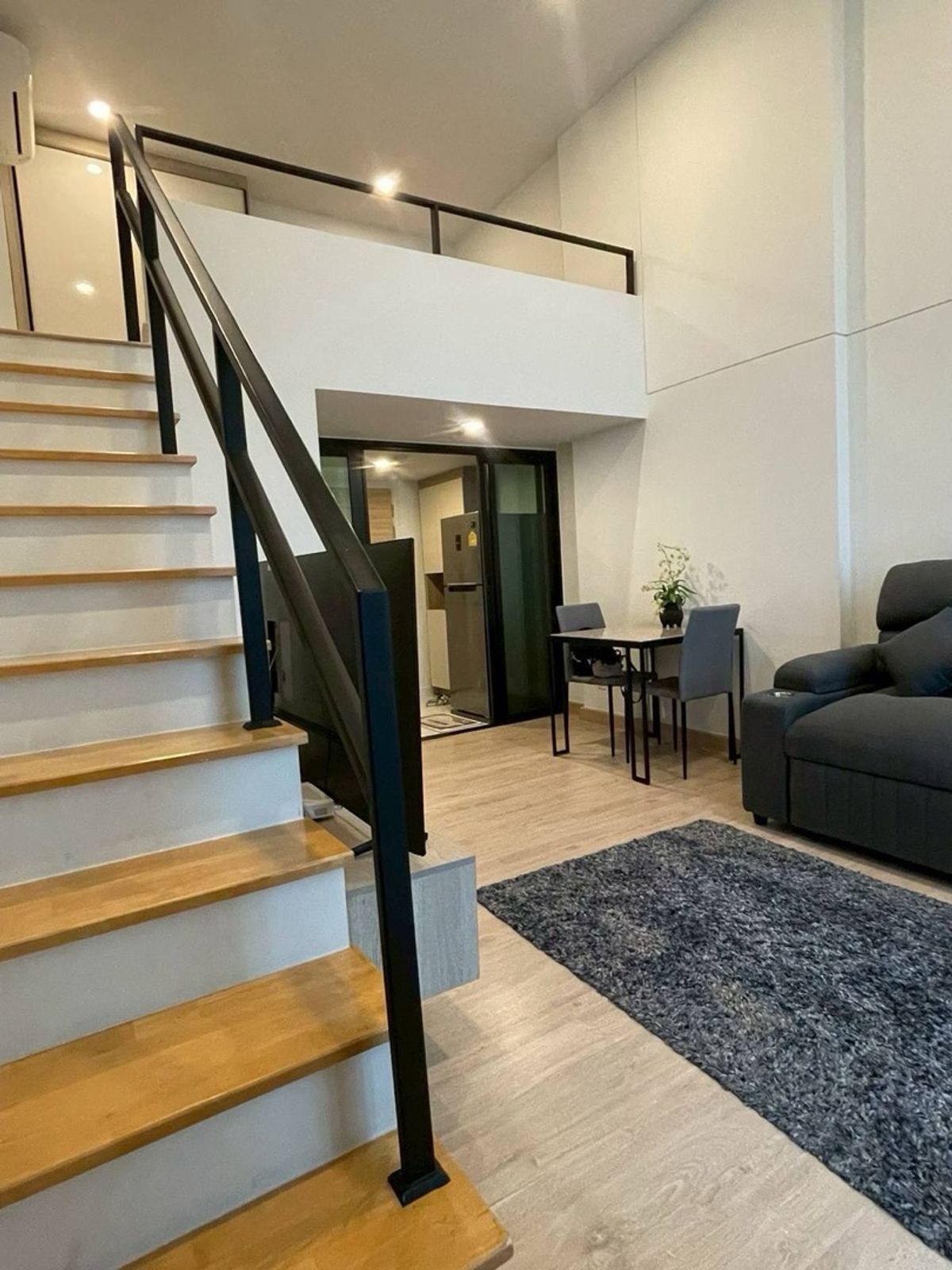 For rent‼️Knightsbridge Duplex Tiwanon, size 42 sq m., 19th floor, room on the north, cool, ceiling height 4.20 meters, open and airy, close to MRT purple, Ministry of Public Health, 30 meters 📌Monthly rent 16,000 baht 🌿Common fees already included 🔸New! Sofa bed 🔸A comfortable place to sleep too. slumberland 🔸 TV 55" washing machine, microwave, refrigerator, water heater 🔸 Dining table set 🔸 Work desk ┏━━━━━━━━━━━━━━━━┓ ┃If interested, contact Agent Mai ┃ Line LINE : Mai_MyMy ┃ Call Contact number (( New Ag. )) ┗━━━━━━━━━━━━━━━━┛