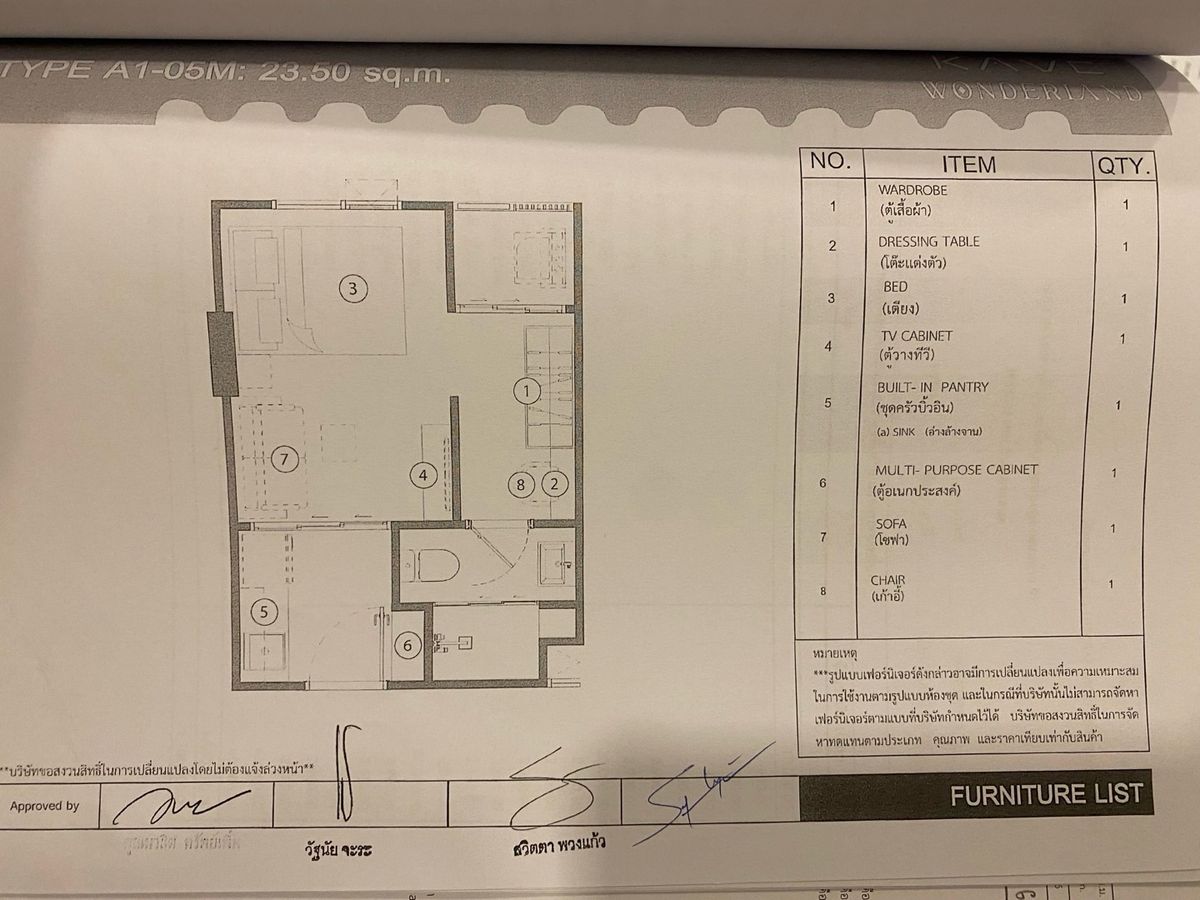 Condo down payment for sale, Kave wonderland , cheap price during pre-sale before returning project rights. and put it up for sale at a price higher than the contract price by another 100,000 baht. Th