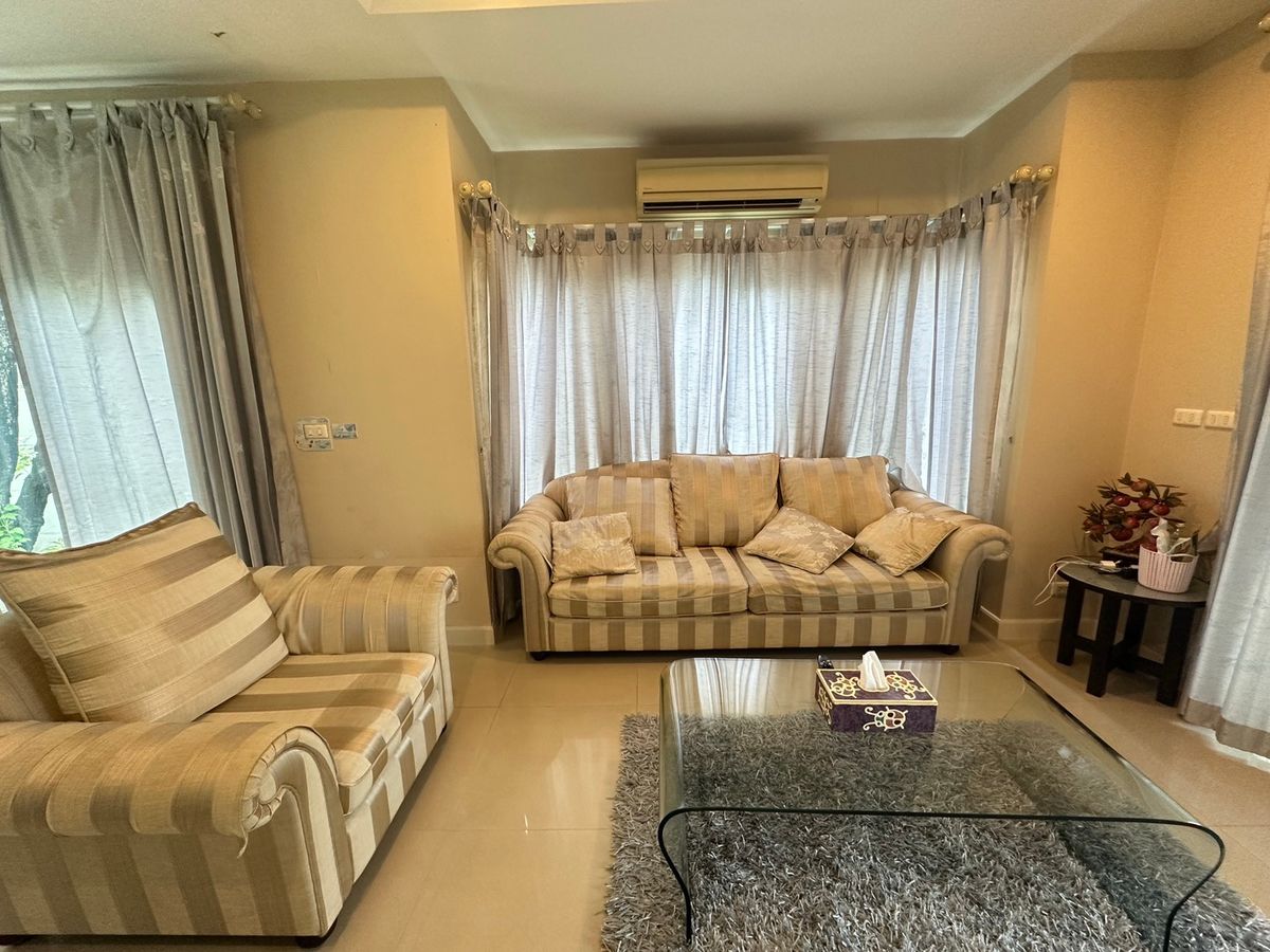 Single house for rent, ready to move in There is furniture build in The City Rama 5 Ratchapruek Nakhon In Road, Bang Khun Kong, Bang Kruai, Nonthaburi, 11130, Thailand 3 bedrooms, 3 bathrooms Beginning of Soi 5 Type: Single house Height: 2 floors Area: 60 square wah Bedrooms: 3 bathrooms: 3 other rooms: 1 kitchen, 1 living room Parking space: 2 cars Additional details: 5 air conditioners, blinds, curtains throughout the house , kitchen counter, refrigerator, electric stove, microwave, 4-seat dining table set, 2 TVs, sofa set, 2 living room sets Furniture: fully built in, ready to move in Facilities: Clubhouse, swimming pool with salt cell system, childrens pool Fitness, public park, playground, Key Card Access, CCTV, security guard 24 hrs. Good location next to Nakhon In Road. Near Rama 5 roundabout Nearby places : Department Store - The Walk Ratchaphruek - Central Westville - The Crystal SB Ratchaphruek Educational institution - Ratchaphruek University - Denla Rama 5 School Medical Center Nonthaburi Medical Center Bang Kruai Police Station Minimum 1 year rental contract 42,000 baht/month, 2 months deposit, 1 month advance