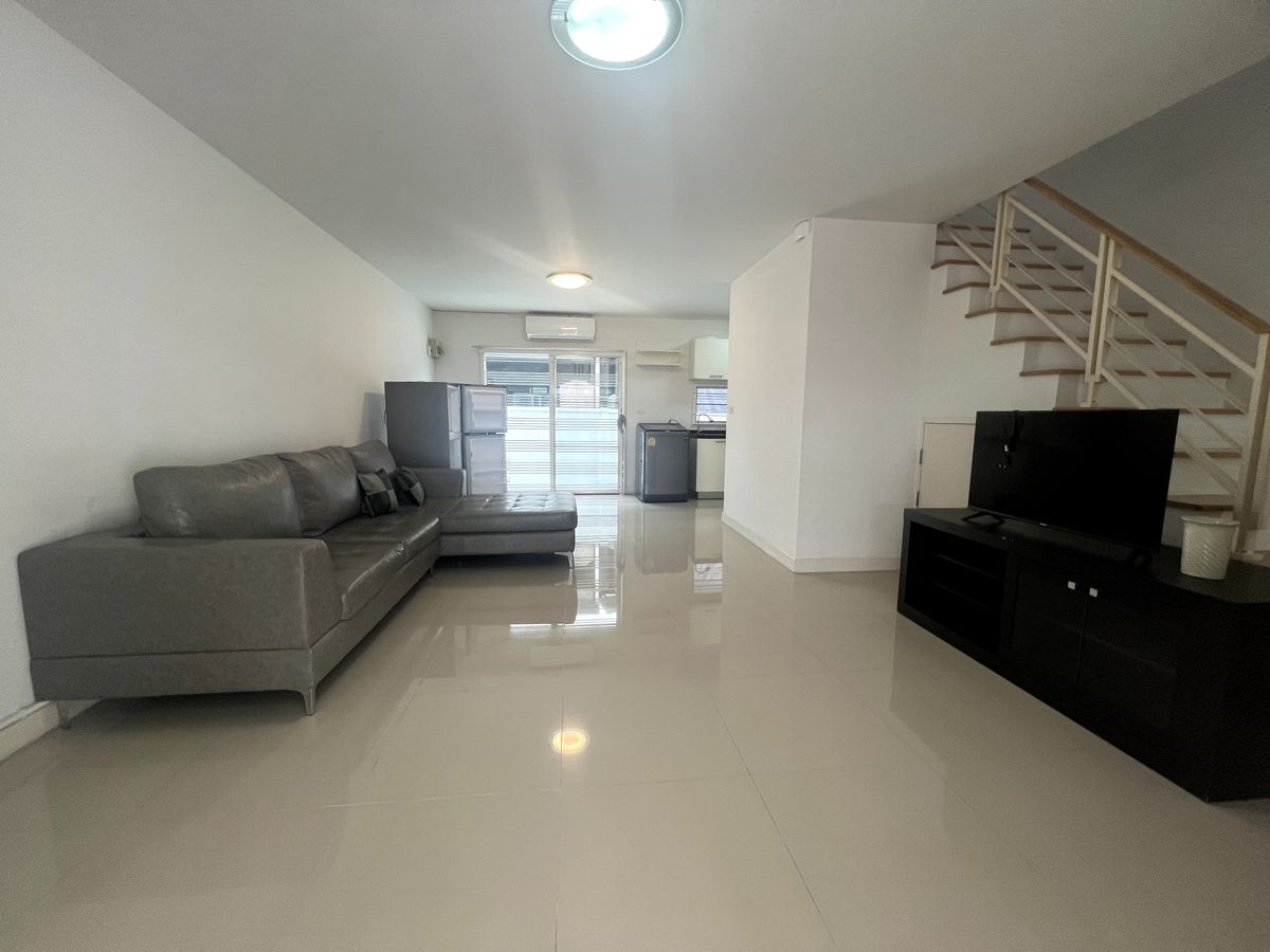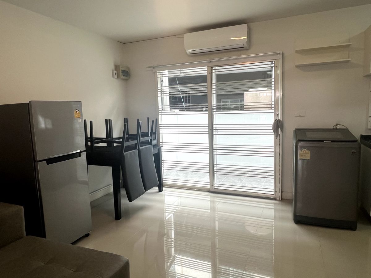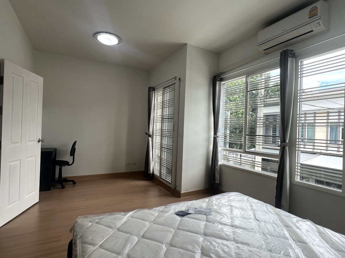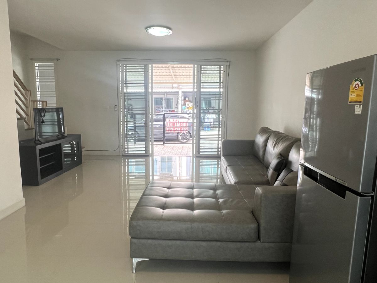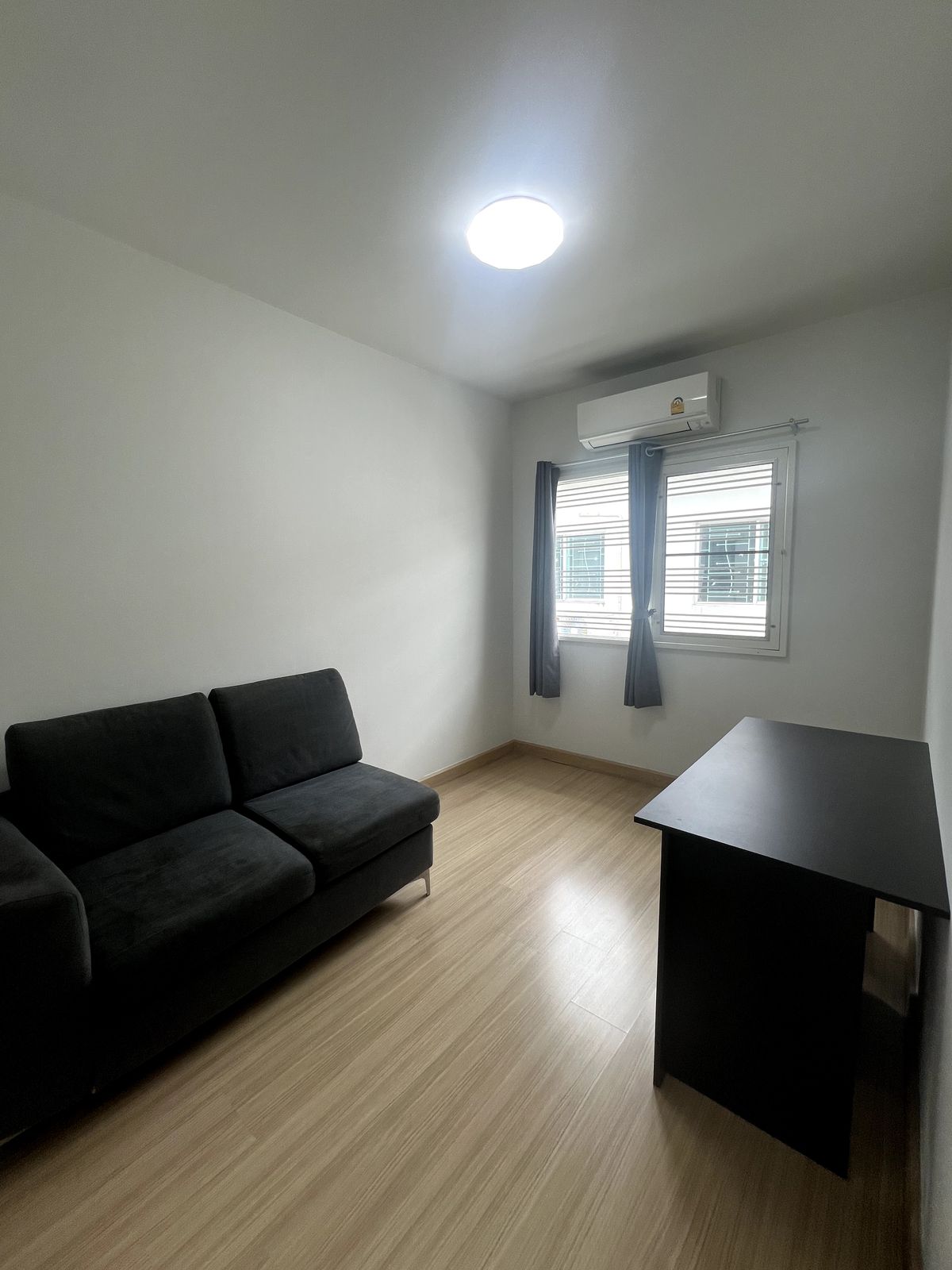 2-story townhouse for sale: Pleno Tiwanon - Chaengwattana Width 5.5 meters Type: 3 bedrooms, 2 bathrooms, 2 floors Size: 20 square wah Usable area 124 square meters House number 100/60 located in Soi 7 Location: Soi Phra Mae Karun, Tiwanon Road. Ban Mai Subdistrict, Pak Kret District, Nonthaburi Province, enter the alley just 160 m. In front of the project is Sacred Heart Nonthaburi School. At the entrance of the alley there is a 7-11. At the entrance of the alley, walk from the project only 160 m. there will be Duangkaew Market. There are many shops and restaurants to choose from, only 270 meters away, or the nearest community mall, Mint Village. Even though its not very big, there are restaurants for you to eat. But there will also be tutoring schools like Kumon Inside the house the master bedroom has a bed with a 6 foot mattress a wardrobe. Dressing table Air conditioner Small bedroom, room 1 has air conditioner, work desk with chair. Small bedroom, room 2, no air conditioner Living room has 3-seat sofa TV table Smart TV 43 inches brand LG Air conditioner Kitchen has kitchen set. starmark electric stove and exhaust hood Elextroluk 2-door refrigerator Dining table + 4 chairs Top-loading washing machine 10 kilos The upstairs bathroom has a water heater. The downstairs bathroom does not have a water heater There is a water pump. Water tank Parking for 2 cars in the house There is no roof added at the back of the house. There is only tiling Facilities in the project: 1. Swimming pool 2. Public parks and relaxation corners around the project 3. 24 hour security system, CCTV 4 points in front of the project 4. Entry-exit with the Access Control Barrier system 5. Project fence 2.5 meters high Nearby places: – Sacred Heart School Nonthaburi : 10 m. – Nawamintrachinuthit Horwang School Nonthaburi : 1.8 km. – Suankularb Nonthaburi School : 6.4 km. – Duangkaew Market : 270 m. – Mint Village : 350 km. – Central Chaengwattana : 10 Km. – Tesco Lotus : 1.6 Km. - Robinson Srisamarn - Srisamarn Expressway - Muang Thong Thani Public Transport: Red Line BTS Contact Contact number Line ID: phannaporn https://line.me/ti/p/eBzxd6WhjR