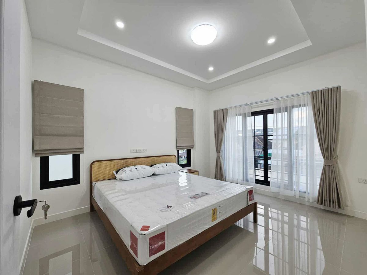 House in the project For rent 40,000 baht per month, close to Meechok Plaza, only 5 minutes No.5H609 清迈美丽的2层别墅出租 。每月租金 40,000 泰铢,。No.5H609 Two-story detached house has 4 bedrooms, 4 bathrooms, area 70
