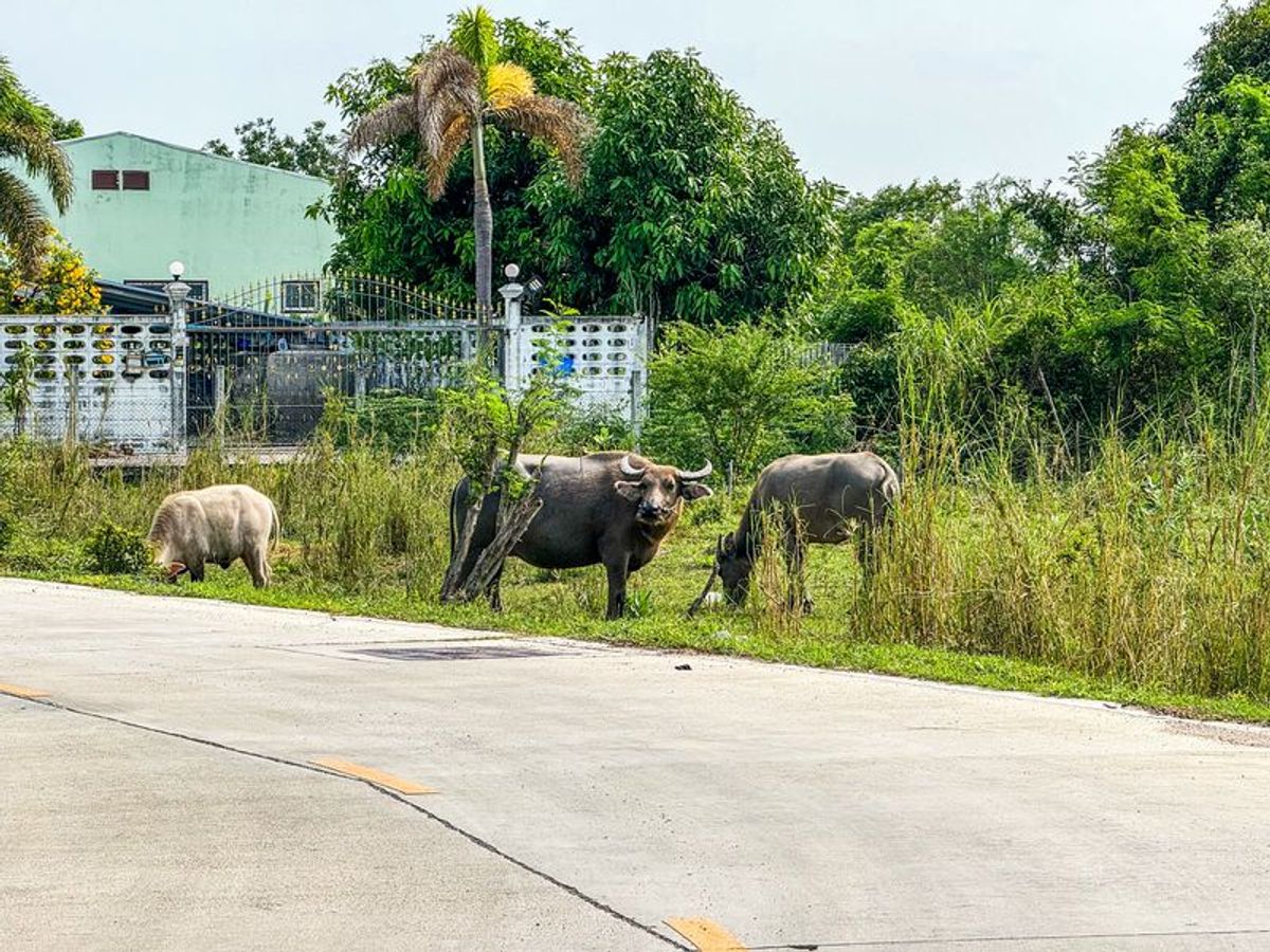 House for sale with land outside the project Location: Huai Kapi, Chonburi Land with natural surroundings next to the railway. The road is wide clear and not crowded. There are many ways to enter and