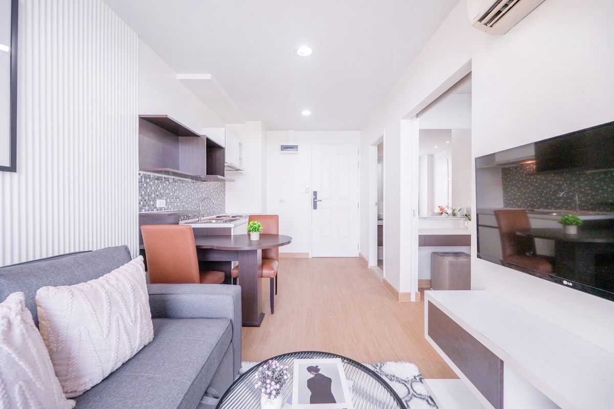 🏡 Resort style condo Baan Navatara 🏡 Kaset Nawamin Near Central Eastville There are a lot of doctors around😁 🎊 1 bedroom with kitchen counter 🎊 Fully furnished room, ready to move in, free! Furniture