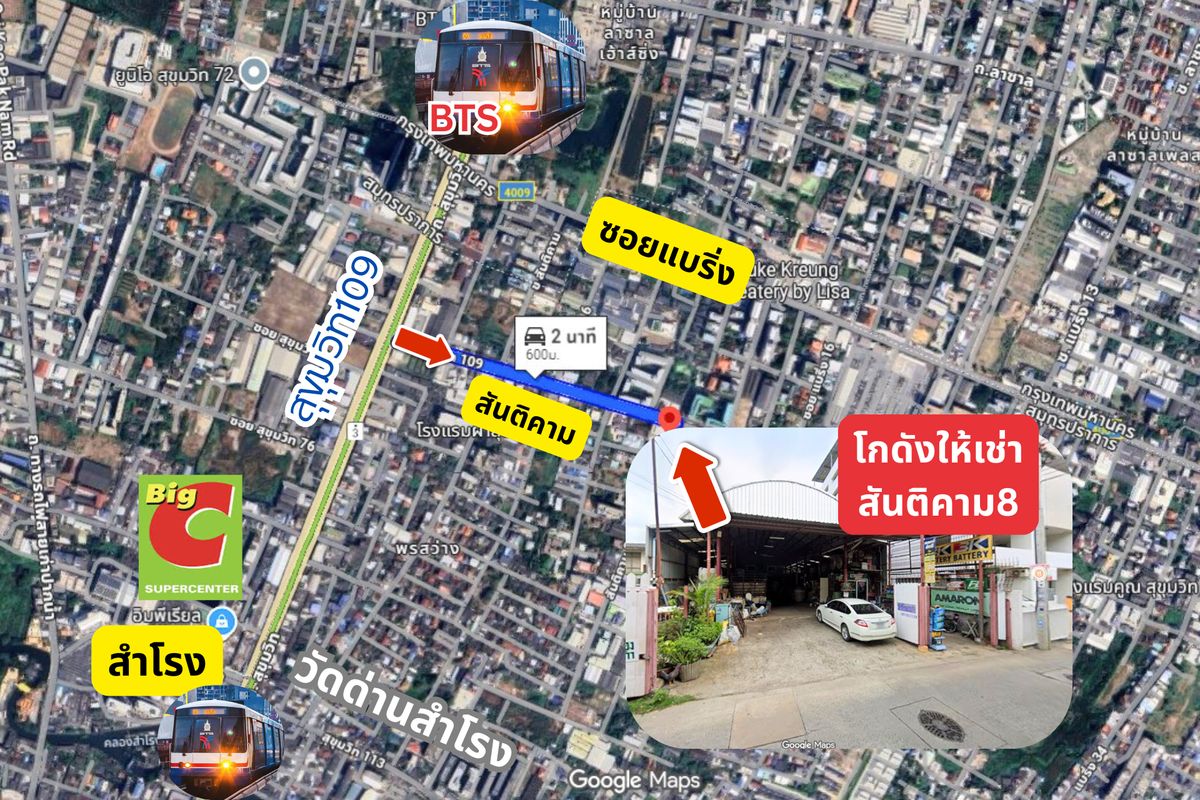Warehouse for rent, Samrong, Sukhumvit 109, Soi Santikham, near BTS Bearing.