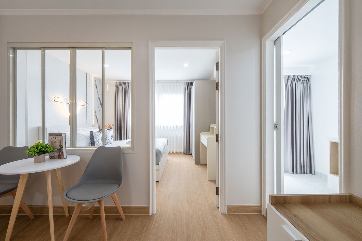 Lumpini Ville Cultural Center project near MRT Huai Khwang, Ratchada, Huai Khwang, Rama 9, Ramkhamhaeng, Lat Phrao ️1 bedroom, 1 living room and a closed kitchen Large room️size 37 sq m. Corner room🥳