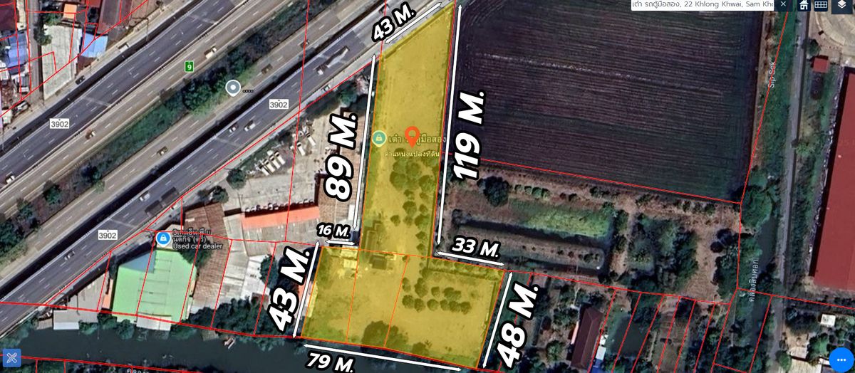 Empty land for sale, 3 rai 3 ngan 85 sq m, Sam Khok, Pathum Thani Land, Sam Khok, Pathum Thani Province Land size 3 rai 3 ngan 85 sq m , Width 43 meters, Depth 167 meters Empty land, already filled in