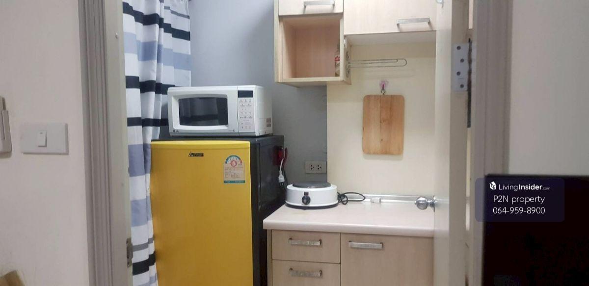 LPNCT135 Condo for rent, Lumpini Center Sukhumvit 77, 9th floor, Building B, city view, 29 sq m, 1 bedroom, 1 bathroom, 8,000 baht. Furniture and appliances included: - Bed with mattress - Wardrobe -