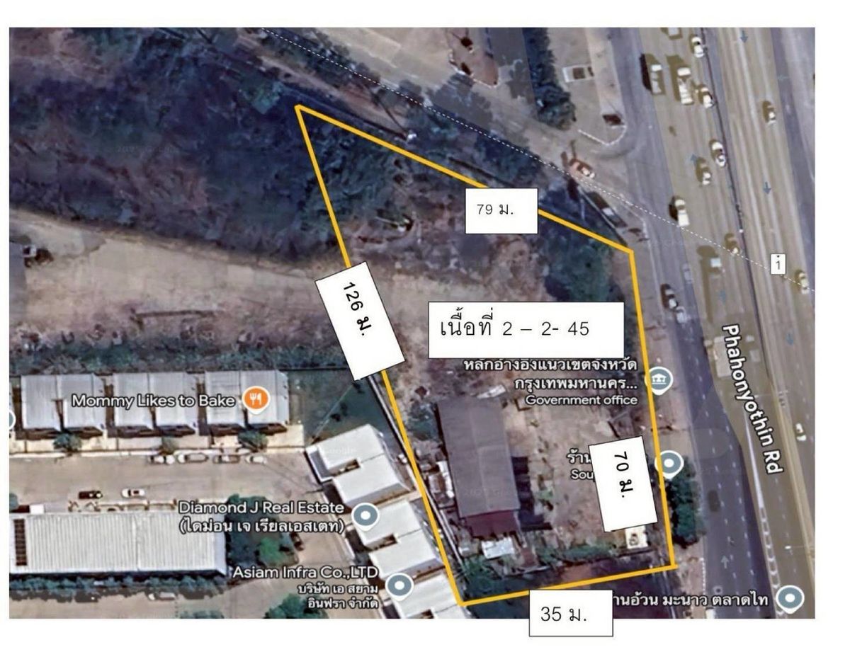 ✨ The most rare plot in Bangkok! Suitable for investment in developing premium horizontal projects. or commercial ⸻ 📍 Location: Phahonyothin Road, Khlong Thanon Subdistrict, Sai Mai District, Bangkok Area: 2 rai 2 ngan 45 sq m (total 1,045 sq m) Width: 70 meters City plan: Yellow Document of right: Title deed ready for transfer / free of encumbrance ⸻ 🔑 Highlights: • Located on the main road, convenient to travel both into the city and out of the city. • Only 4 km from Don Mueang Airport. • Near BTS K.Por. intersection and tollway expressway. • Surrounded by new development projects such as NUE Noble, luxury villages and Mitr Market. • Water and electricity ready, house registration already available. • Suitable for Townhome, Home Office, Community Mall, Showroom, Hotel or Office projects. ⸻ 🏙️ Nearby places: Don Mueang Airport / BTS intersection / Synphaet Hospital / B-Care Hospital / Si Mum Mueang Market / Toyota, Ford showroom / PTT gas station / Bang Chak ⸻ #Land next to the main road #Bangkok land #Don Mueang land #Khu Khot land #Investment land #Real estate investment