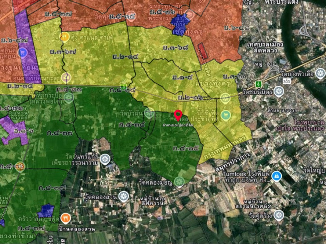 Land for rent on Soi Pracha Uthit 76, near Phuttha Bucha Road, Thung Khru. Suitable for business. 4 rai, 1 ngan, 10 sq. wah. :: Details :: - Land area: 4 rai, 1 ngan, 10 sq. wah - Green City Plan / Ko
