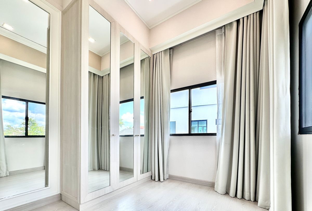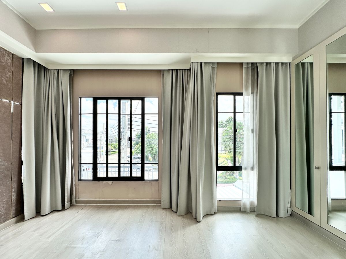 Urgent sale!! Pruksa Ville Phahonyothin-Ramindra, only 4.89 million, the largest house in the project build-in, luxuriously decorated throughout, complete with furniture. Add a full kitchen, ready to move in. At a price you shouldnt miss 🏡Townhome TYPE Empire -land size 40 sq m (lots of space around the house The largest in the project) - Usable area 130 sq m - 3 bedrooms, 2 bathrooms - 1 living room/1 kitchen/1 multi-purpose room - Complete addition to the back of the house with build in good kitchen counter - Main bedroom comes with ceiling mounted air conditioner - 4 air conditioners 📍Potential location, convenient travel. Near the Pink Line and Northern Green Line with many routes to enter and exit. Both Ramindra, Phahonyothin, Watcharaphon and Permsin 📍 Nearby places • Pink Line MRT, Watcharaphon Station — 3 km. • Northern Green Line, Sai Yut Station — 4.5 km. • Chalong Rat Expressway (Ramintra – At Narong) — 5 km. • Central Ramintra — 6 km. • Fashion Island / The Promenade — 7 km. • Satit Pattana School — 4 km. • Synphaet Hospital — 6 km. • Thanommit Market — 3 km. 📍 Coordinates https://maps.app.goo.gl/EkmCaHL5nwPo5mwC6 📞 Contact for inquiries / make an appointment to view the actual house Tel: Contact number Tel: Contact number