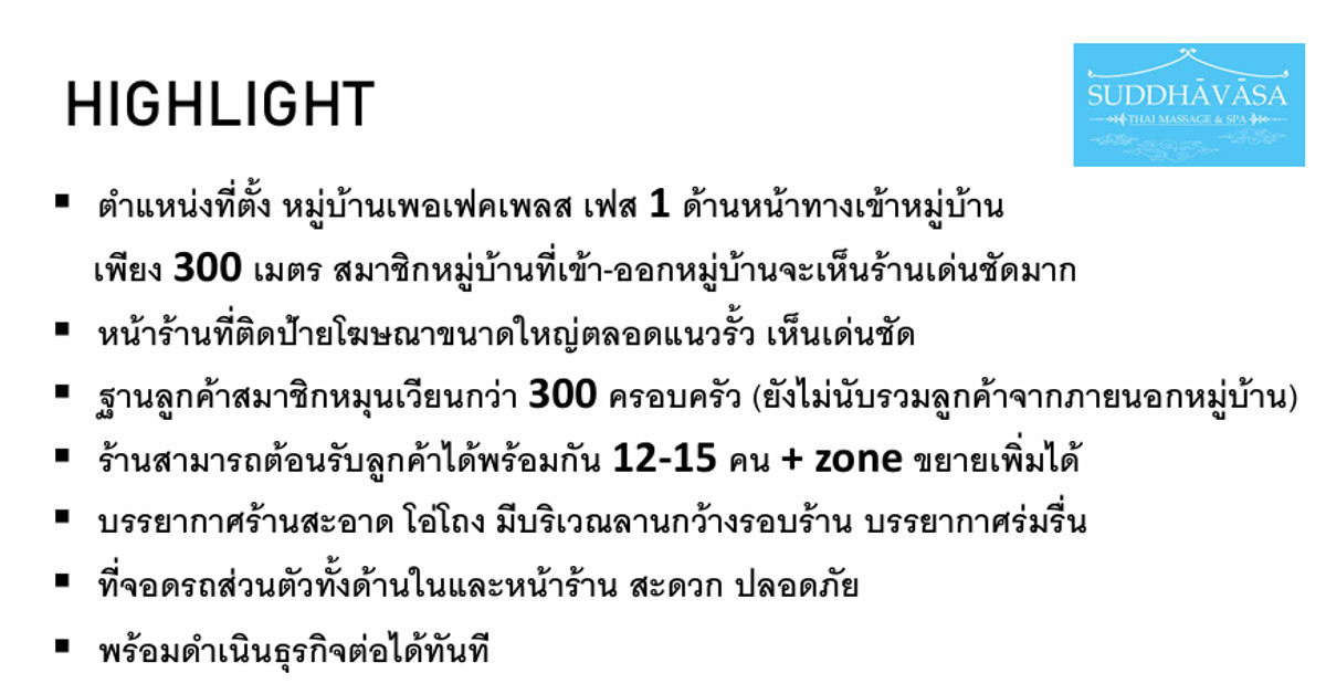🌿 Business for Lease or Takeover – Massage & Spa A wellness and beauty retreat in a serene, private atmosphere – Ramkhamhaeng Soi 164, Bangkok After over 8 successful years of operation (Google Review 4.9⭐), Massage & Spa is now open for business takeover or new lease, offering a rare opportunity to continue a well-established wellness business with a loyal local and international customer base. 📍 Location Address: 82/21 Soi Ramkhamhaeng 164, Minburi, Bangkok 10510 📍 Google Map: https://maps.app.goo.gl/8NDdvj7JDPAD98MXA Nearby landmarks: Bromsgrove International School — 900 m Ruamrudee International School — 900 m Kasemrad Hospital — 5 km The Paseo Town Ramkhamhaeng — 7 km Suvarnabhumi Airport — 19 km Lotus’s Supercenter Sukhapiban 3 — 4 km 💆‍♀️ Property Features Fully equipped spa facility with multiple treatment zones: Thai massage rooms, private treatment rooms, reception area, staff quarters. Accommodates 12–15 clients per session with option to expand further. Private parking (front and inside the premises). Utilities ready — electricity, water, and internet — move-in ready! 🌟 Highlights Established and reputable spa business with a solid 8-year history. Existing customer base of over 300 households (plus walk-ins and expats). Prime location at the entrance of Perfect Place Village Phase 1, high visibility. Calm and green surroundings – ideal for wellness or beauty business. Safe and convenient area with easy access from Ramkhamhaeng main road. 💰 Lease / Takeover Terms 💼 Investment Details • Takeover Fee: THB 1,500,000 (includes furniture, fixtures & full spa equipment) • Monthly Rent: THB 50,000 • Lease Term: 1–3 years (renewable for another 3 years) • Ideal for those looking to expand in Wellness, Spa, or Café-in-the-Garden business models 📞 Contact Pong (Tanachai) 📱 Tel / Line: Contact number Feel free to contact for viewing appointments and more details. 💫 Closing with Gratitude, Opening for New Opportunity After 8 memorable years serving our wonderful clients, Suddhavasa Massage & Spa is ready to pass on this beautiful space to the next passionate owner who will continue to bring wellness and happiness to others. 🌱 🔖 Recommended Hashtags #SpaForLease #SpaBusinessBangkok #MassageAndSpa #WellnessInvestment #BangkokBusiness #Ramkhamhaeng164 #HealthAndBeautyBusiness #TurnkeySpa #BusinessOpportunity