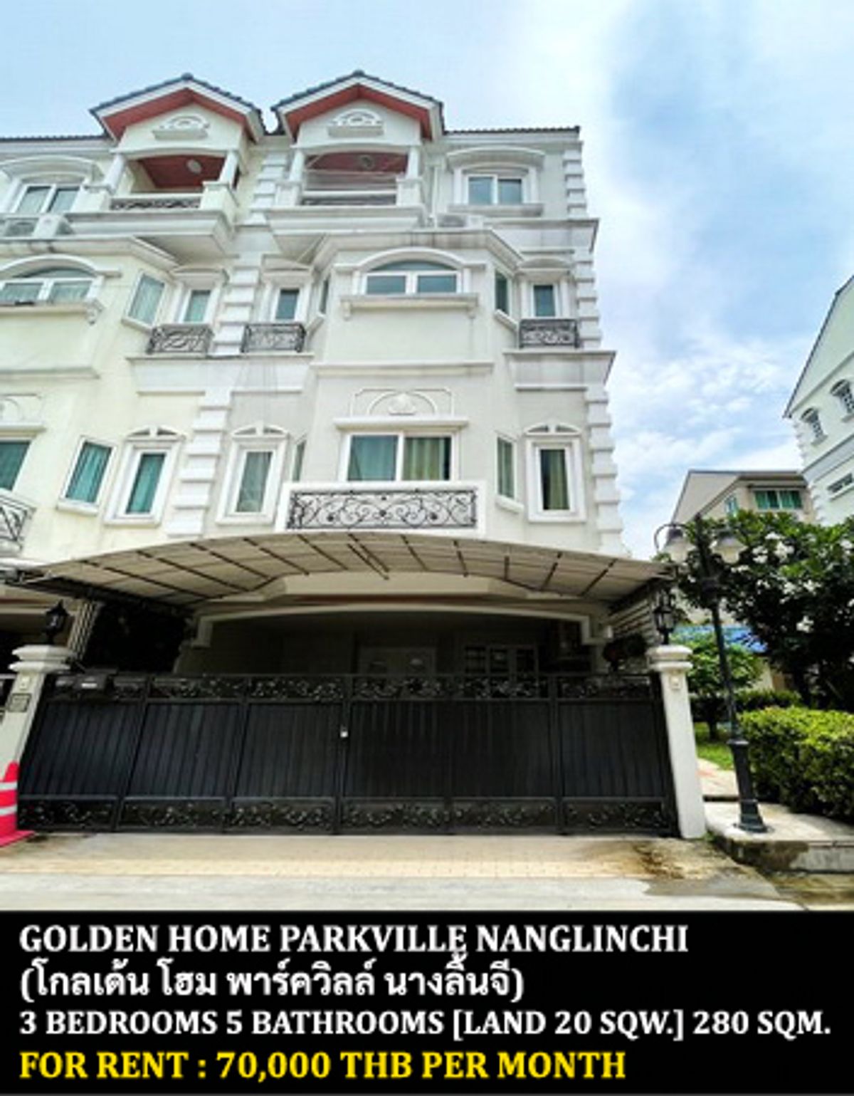 FOR RENT GOLDEN HOME PARKVILLE NANGLINCHI / 3 bedrooms 5 bathrooms / 20 Sqw. 280 Sqm. **70,000** CLOSE TO CENTRAL PLAZA RAMA 3