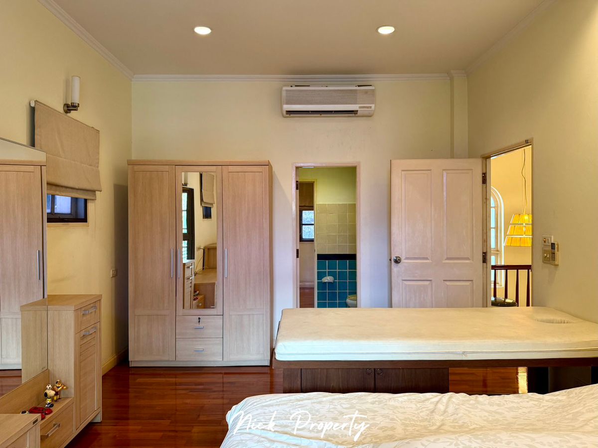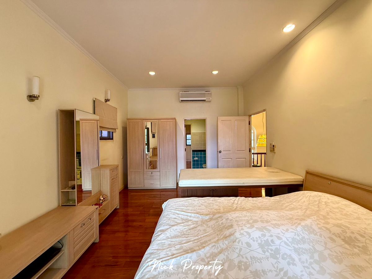 BEVERLY HILLS Chaengwattana, plot 1 - large detached house, corner house, Beverly Hills Chaengwattana, the best project for privacy, prime location, quality society, good life you can choose. Plot 1: 2-storey detached house, corner house | North strong structure Sold as is Land size 105.8 tarawa Usable area 450 square meters 3 bedrooms | 4 bathrooms 1 living zone | 2 kitchen zones 2 parking spaces (currently used as storage) There is a separate maids room, 1 bedroom, 1 bathroom Common fee 23 baht / per square wa / month Nearby places : - MRT Chaengwattana 14 - Harrow International School Bangkok - Mongkut Watthana Hospital 500 meters - Kasetsart University - Central Chaengwattana Department Store - Central Ramintra - Chaengwattana Government Center Facilities : - Club House gathering point - Fitness, Playground - 24-hour security system - Swimming pool Special price 21,900,000 baht (transfer fee 50/50) If interested, make an appointment to view the actual house first. If you really like it, you can negotiate. ____________________________ If you want more land, adjacent plots. Can purchase additional items. The details are as follows If you want to buy all plots together or buy any plots separately. You can inform me. Plot 1. - 105.8 tarawa, ready land + house = 21,900,000 baht, corner house (front of house facing north) Plot 2. - 99 square wa, empty land, 140,000 baht per square wa = 13,860,000 baht (front of land Facing north) Plot 3. - 117.4 square wah, empty land, 140,000 baht per square wah = 16,436,000 baht (in front of the land Facing south) In the case of purchasing all plots of land, you will get - 322.2 square wah Total purchase price 51,822,000 baht, transfer fee 50/50 If interested, make an appointment to see the actual house first. If you really like it, you can negotiate. ____________________________ For more information or to make an appointment to see: Mr. Nick Tel : Contact number Line : nickperfect E-mail : Contact email