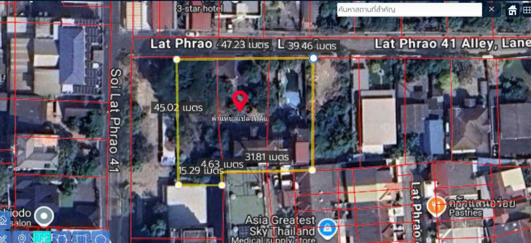 Land for rent with two houses, a swimming pool, and a lawn. Large 1-rai plot near the Phawana MRT station. :: Highlights :: Ideal for businesses looking for a prime location, including: Restaurant/Cafe: Spacious space with ample parking. Office/Co-working space: Quiet atmosphere, close to the BTS, convenient transportation. Hostel/Accommodation: Large capacity, with existing buildings that can be easily renovated. Asset Information Property Code: L084034 Property Type: Land Land Size: 1-0-0 rai Property Details: Area: 1 rai (400 sq wah) Buildings: 2 houses Swimming pool, lawn 6-meter wide road :: Details: - Land Area: 1 rai :: Nearby Places: MRT Phawana MRT Huai Khwang Esplanade Ratchadaphisek The Street Ratchada Central Rama 9 Coordinates: http://maps.google.com/maps?q=13.796,100.579 Price: 85,000 baht (Price: 213 baht/sq wah) Contact: eraholding Contact number Line: @erathailand