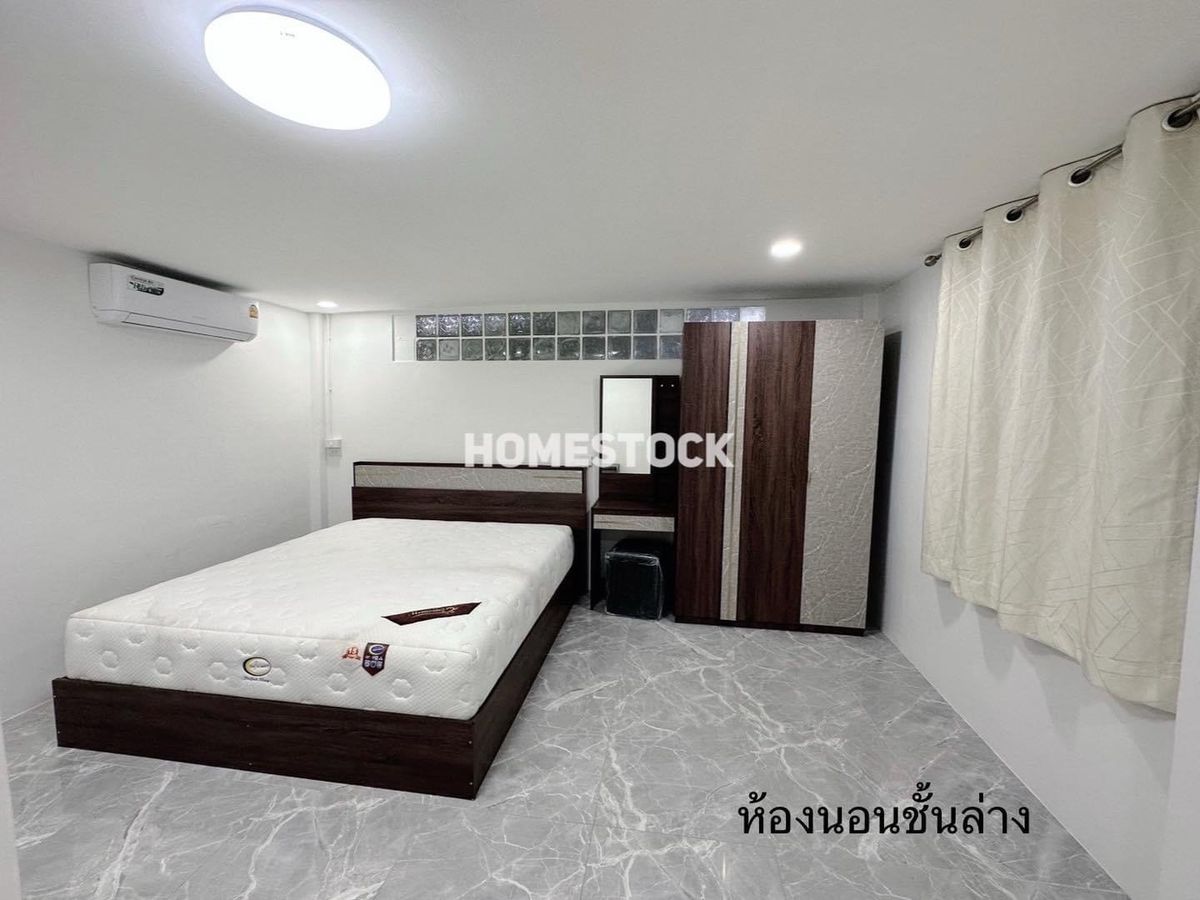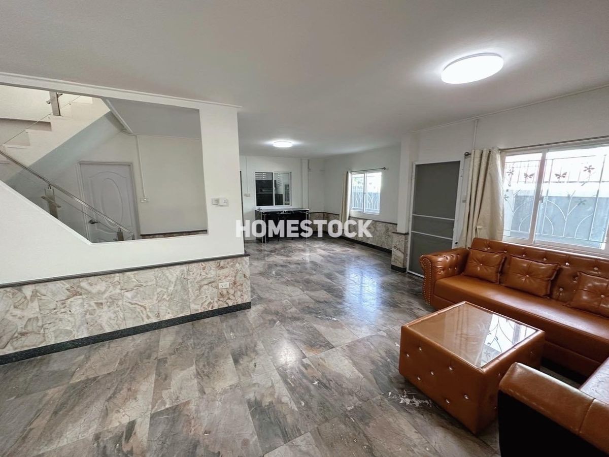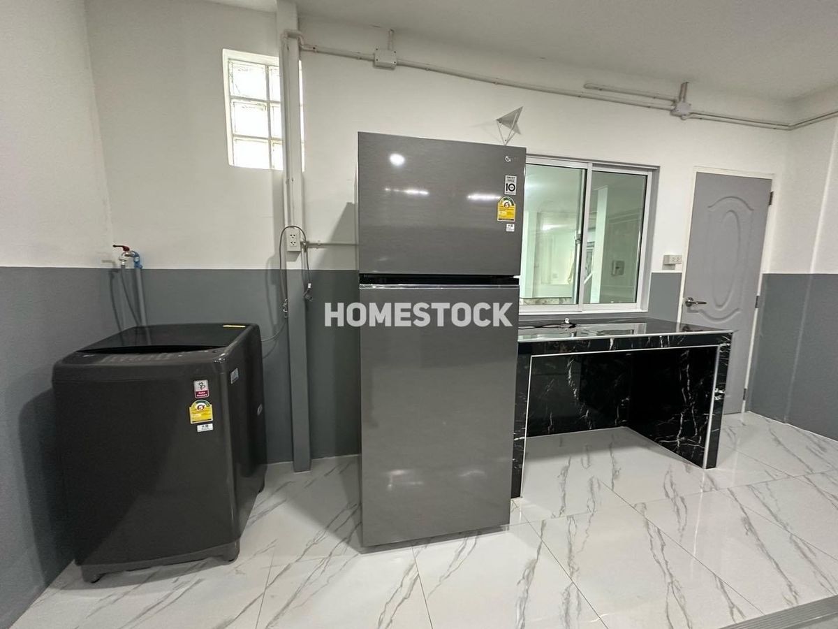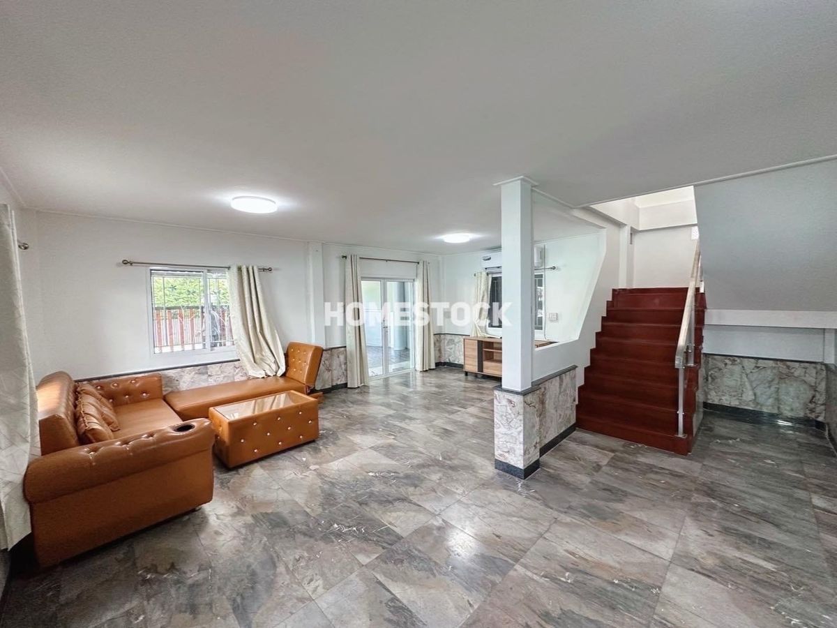 29,000.- Detached house, corner house with furniture, Thongsathit Village, Ramintra 34, Intersection 20, near Ramintra Expressway. Near Keerapat International Near Ramindra BTS Km. 4 Size 50 square wah 3 bedrooms (1 downstairs, 2 up) 2 bathrooms 2 living rooms (1 downstairs,1 up) 1 very large kitchen can park 2 cars in the house, next to the house another 3 cars parking area paved with stamped concrete front of the house facing southeast furniture and electrical appliances - 4 air conditioners Appliance - Refrigerator - Washing machine - Exhaust hood - Water heater - Sofa - 2 beds - 3 wardrobes - TV shelf _____________________ Rent 29,000 baht, 1 year contract , first entry, 2 month warranty / 1 advance. Month ___________________________________ Interested, inquire/appointment/reserve click https://lin.ee/JzehUTU Line ID : @homestock (with @ too) Tel. : Contact number / Contact number All rights reserved for Homestock images only Do not use without permission.