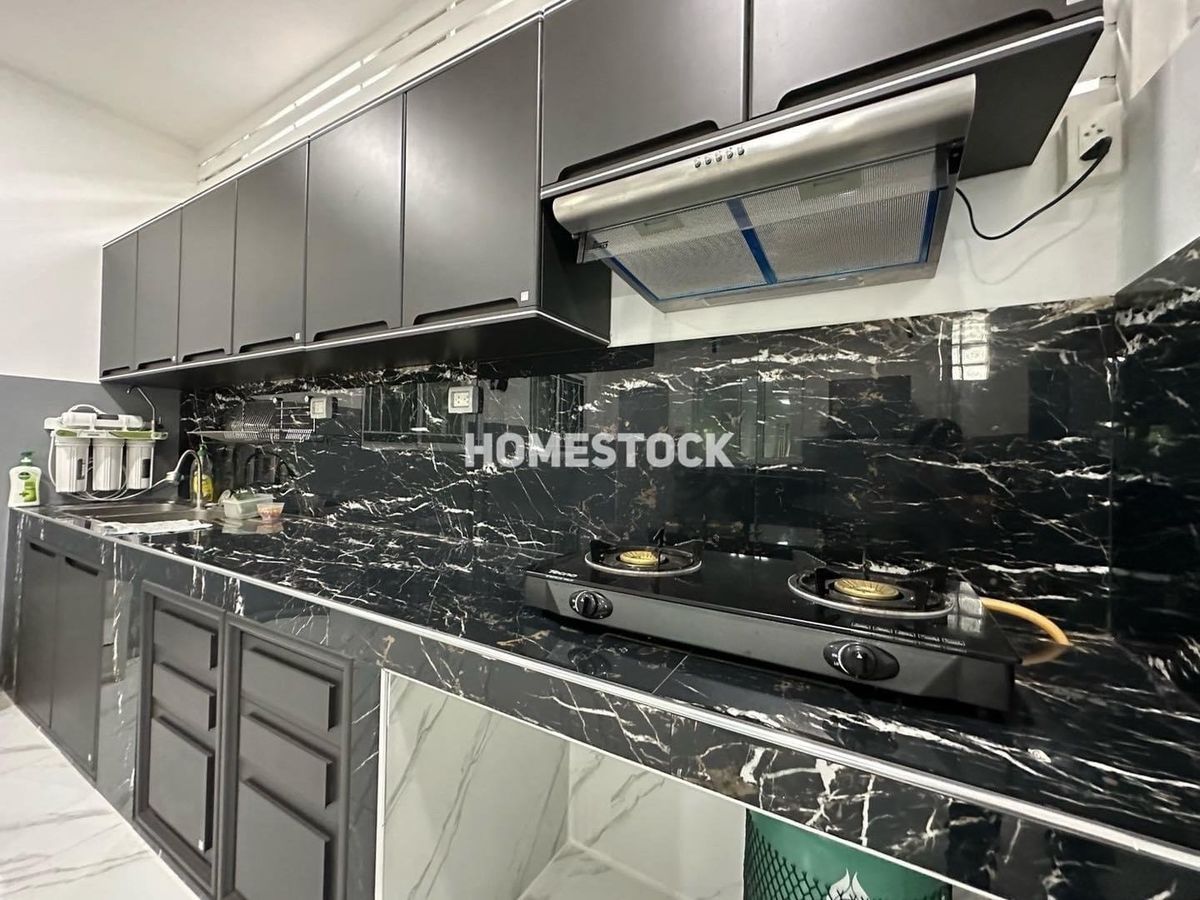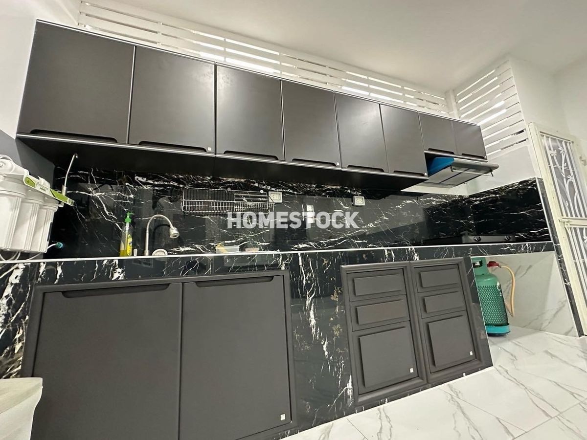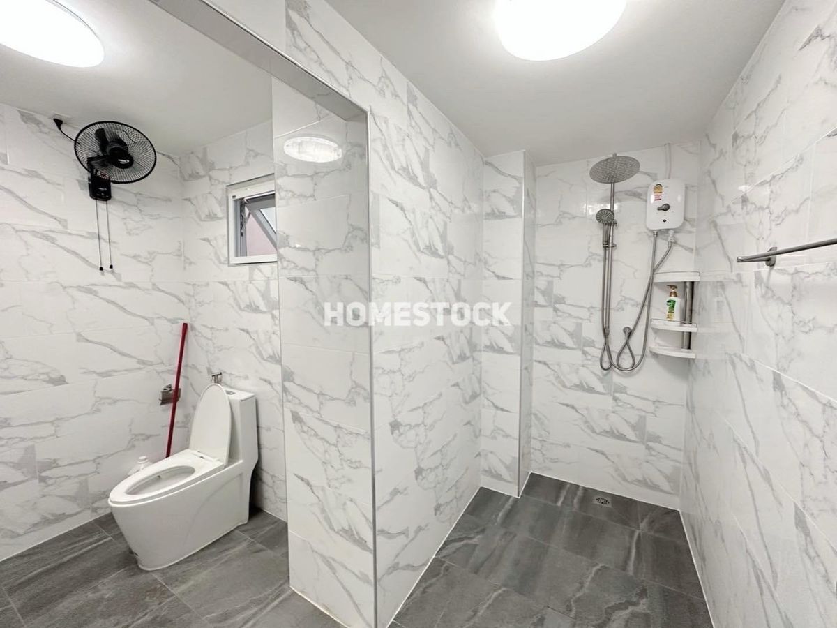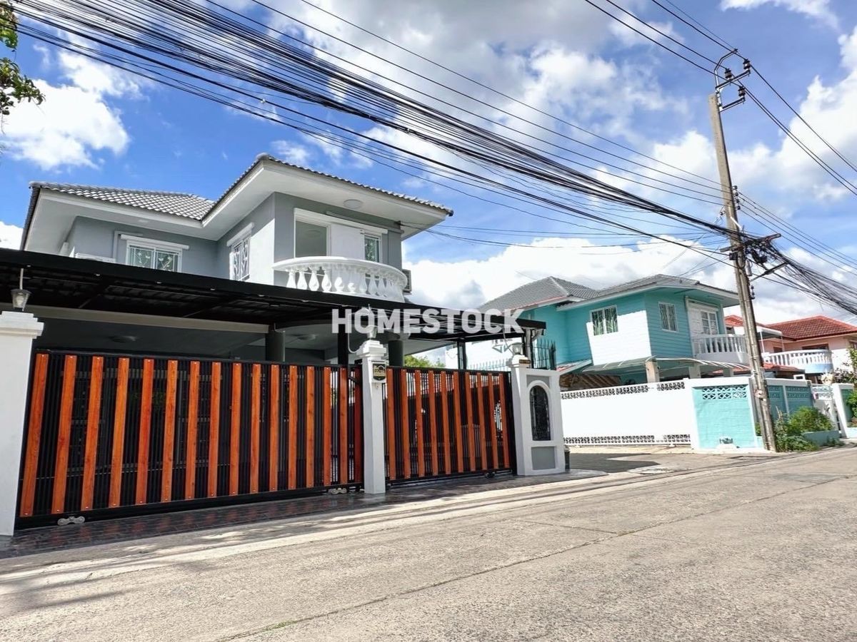 29,000.- Detached house, corner house with furniture, Thongsathit Village, Ramintra 34, Intersection 20, near Ramintra Expressway. Near Keerapat International Near Ramindra BTS Km. 4 Size 50 square wah 3 bedrooms (1 downstairs, 2 up) 2 bathrooms 2 living rooms (1 downstairs,1 up) 1 very large kitchen can park 2 cars in the house, next to the house another 3 cars parking area paved with stamped concrete front of the house facing southeast furniture and electrical appliances - 4 air conditioners Appliance - Refrigerator - Washing machine - Exhaust hood - Water heater - Sofa - 2 beds - 3 wardrobes - TV shelf _____________________ Rent 29,000 baht, 1 year contract , first entry, 2 month warranty / 1 advance. Month ___________________________________ Interested, inquire/appointment/reserve click https://lin.ee/JzehUTU Line ID : @homestock (with @ too) Tel. : Contact number / Contact number All rights reserved for Homestock images only Do not use without permission.