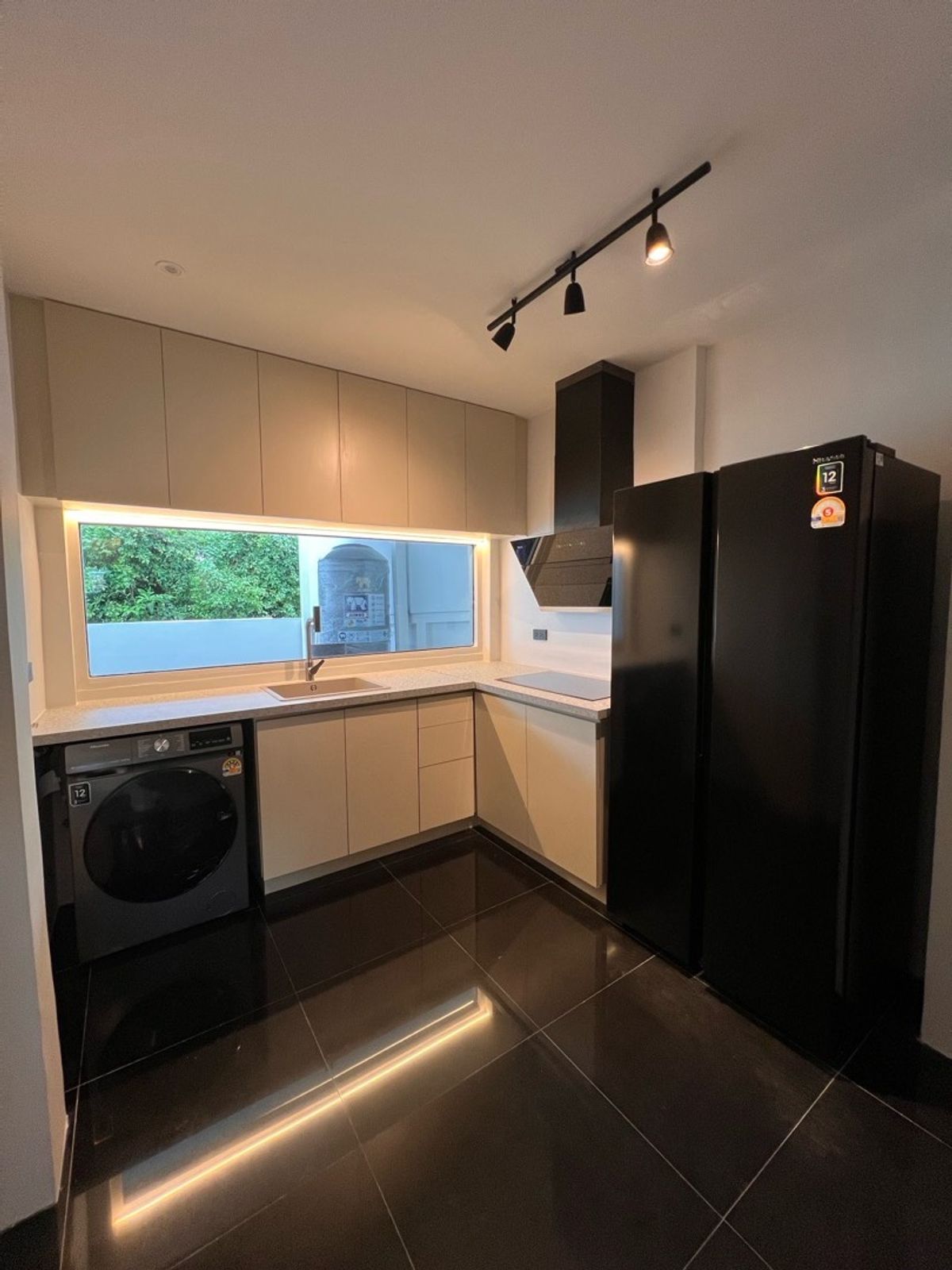 🏡 Townhome for Rent – The Metro Rama 9 ✨ Special Type | Fully Renovated | Fully Furnished Beautiful 3-storey townhome with 3 bedrooms, 3 bathrooms, 1 kitchen, and a large private backyard garden. ✅ Land area: 25 sq.wah (≈100 sq.m.) | Usable area: 165 sq.m.✅ Parking for 2 cars 🔹 Newly renovated throughout – brand-new wiring, lighting, flooring, and air conditioners (2 four-way ceiling units + 2 Smart Home units) 🔹 Built-in furniture in master bedroom (with walk-in closet) and living room🔹 Modern kitchen with side-by-side fridge, induction stove, sensor hood, washer-dryer, microwave, and high-speed internet 🛜 🔹 High-quality mattresses – King size in master, Queen size in second bedroom 🌿 Facilities: Fitness center, swimming pool, 24-hour security, and shuttle bus to Airport Rail Link 📍 Location: The Metro Rama 9 – convenient access to: 🔹 New flooring (SPC fishbone pattern in the house / printed concrete in the back of the house)🔹 New air conditioners throughout the house (2 4-way air conditioners + 2 Smart Home air conditioners) 🔹 Built-in master bedroom (walk-in closet) and living room 🔹 New kitchen complete with side-by-side refrigerator, induction stove, sensor hood, microwave washing machine and dryer. and high speed internet 🔹 High quality mattress, pocket spring + rubber (King size large room / Queen size middle room) Facilities / Facilities 🌿 Fitness | Swimming pool | 24 hrs. security | Shuttle bus to Airport Rail Link Location / Location Highlights 📞 Contact (Contact): Contact number