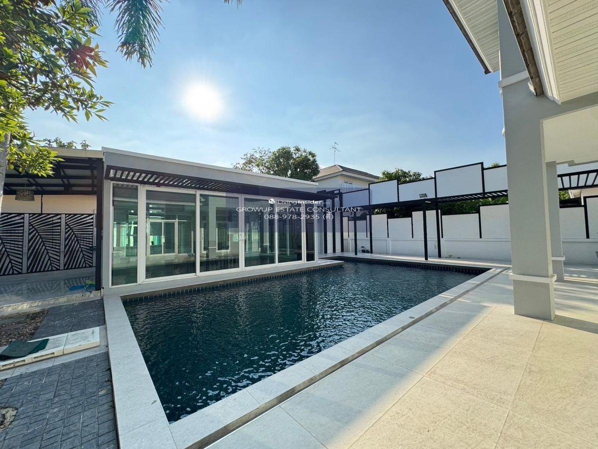 P-2814 Urgent for rent! Single house Perfect Masterpiece Rama 9, ready to move in, near Suvarnabhumi Airport - size 200 sq m - 5 bedrooms, 6 bathrooms - furniture and electrical appliances (No washing machine) - 1 maids room and ensuite bathroom, 1 large kitchen - Swimming pool and guest house inside the house - Rental price 230,000 baht (1 year rental contract = pay 2 months security deposit / 1 month rent in advance, you can move in) - Parking for 4 cars Nearby places - In front of the village is Stamford University - Airport Link Hua Mak Railway Station - Airport Link Thap Chang Railway Station - Yellow Line (Hua Mak Station) - Walkway to Suvarnabhumi Airport only 20 minutes If interested, contact Tel : Contact number, Contact number (Tee) Line ID : @growup_pp (There is @ too) https://lin.ee/E7w94X7 *Please capture the screen or send the link of the condo you are interested in and send it via Line ;D