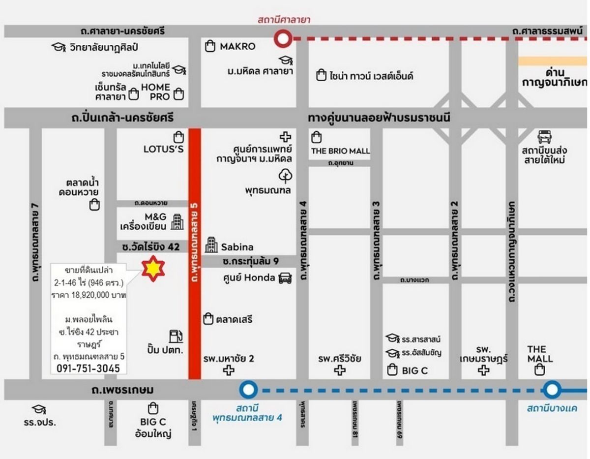 Land for sale, already filled, 2-1-46 rai, Phutthamonthon Sai 5, Soi Rai Khing 42, Pracharat (946 sq m) price 20,000 baht per square wah (18,920,000 baht) . Land already filled, in Soi Ploypailin Village (alley opposite Fah Greenery Theo Village), Soi Rai Khing 42. Pracharat, Phutthamonthon Sai 5 Road . Suitable for building a residence. Doing business or making a warehouse . Selling the whole title deed for 18,920,000 baht If transferred within 2025 (immediate discount of 2 million baht) . Land location : https://maps.app.goo.gl/YJPyFxHNRGXnqP6YA https://maps.app.goo.gl/n43CnKwhNZBgQHfa6 . Note: The picture in Google Map is an old picture. The land has now been improved . Highlights: Soi Rai Khing 42 is a large alley and is very developed. There are big villages, famous brands, many projects such as - Pruksa 102 Boromarajonani Village - Fah Greenery Theo Village - The Plant & Natura Trend Pinklao-Sai 5 - PLENO TOWN Pinklao-Sai. 5 . Interested or make an appointment to see the area? Please make an appointment in advance Contact : Contact number ID Line : somtung70 Line : https://line.me/ti/p/yfSi05leZV . #Raikhing42 #Pracharat #Phutthamonthon Sai5 #Pruksa Village 102 #Fa Greenery Village #ThePlant Sai 5 #PLENO Sai 5 #Land for sale Sai 5 #Ploypailin Village #Land for sale in Sam Phran Nakhon Pathom . ------------------------------------------------------------------------------ . . Real estate posting service Promote all types of assets through leading websites Post a Facebook group Premium position http://www.yongservice.com