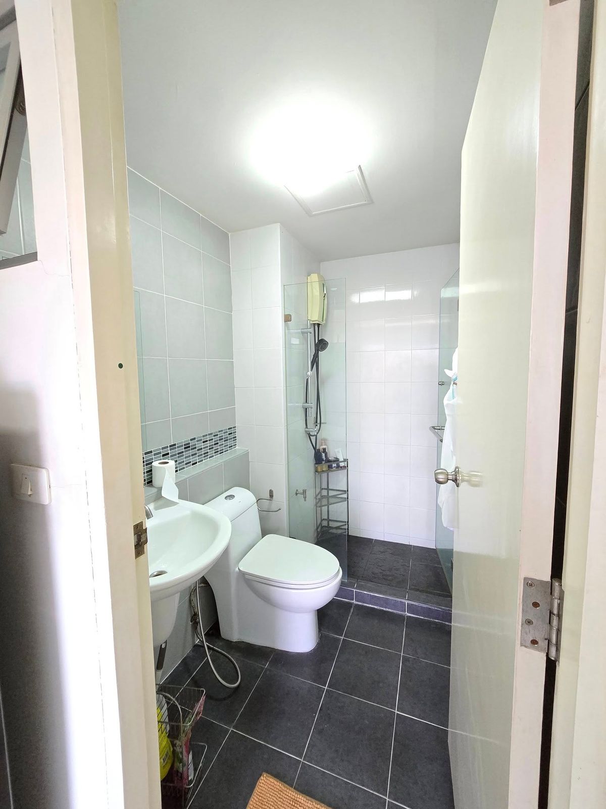 For rent: D Condo Ramintra, near BTS Mai Lap. ***Price: 7,500 baht / month (rent includes common area fees)*** Washing machine and dryer included for 9,500 baht. Contact: Tel: Contact number (Miki) Line ID: @miki_proagent (Add me too!) https://lin.ee/VeUW4bB WhatsApp: Contact number Email: Contact email FR00393 * 6th Floor, Building C * Area: 30 sq m * 1 Bedroom, 1 Bathroom * Furniture: Bed / Mattress / Wardrobe / Dressing Table / Sofa / Coffee Table / Chair / Built-in * Appliances: TV / Microwave / Air Conditioner / Water Heater / Refrigerator Amenities: – Swimming Pool, Fitness – Security Guard, CCTV Nearby Landmarks: 1. Big C 2. Tesco Lotus 3. Foodland 4. Central Ramintra 5. Fashion Island