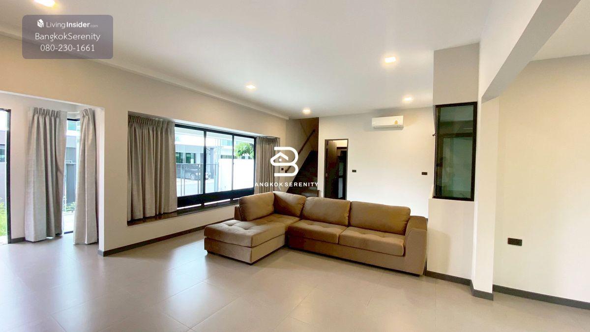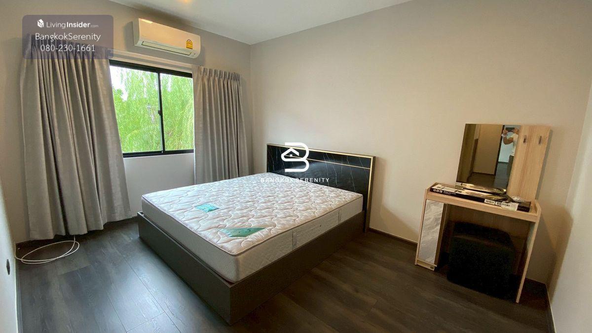 Townhouse for sale Vive Bangna KM.7 - Land size 40.3 square wah, corner unit - Usable area size 225 square meters - 3 bedrooms with en-suite bathroom - 1 bathroom, ground floor - Maids room with bathroom - Parking for 2 cars - Sold with furniture - Selling price 19.4 million including transfer fee, tax. Half each Facilities - Swimming pool - Fitness - Common garden - Security guard Nearby - Mega Bangna - Concodian International School - Top Golf - The Glass Market - Muang Keaw Golf Course