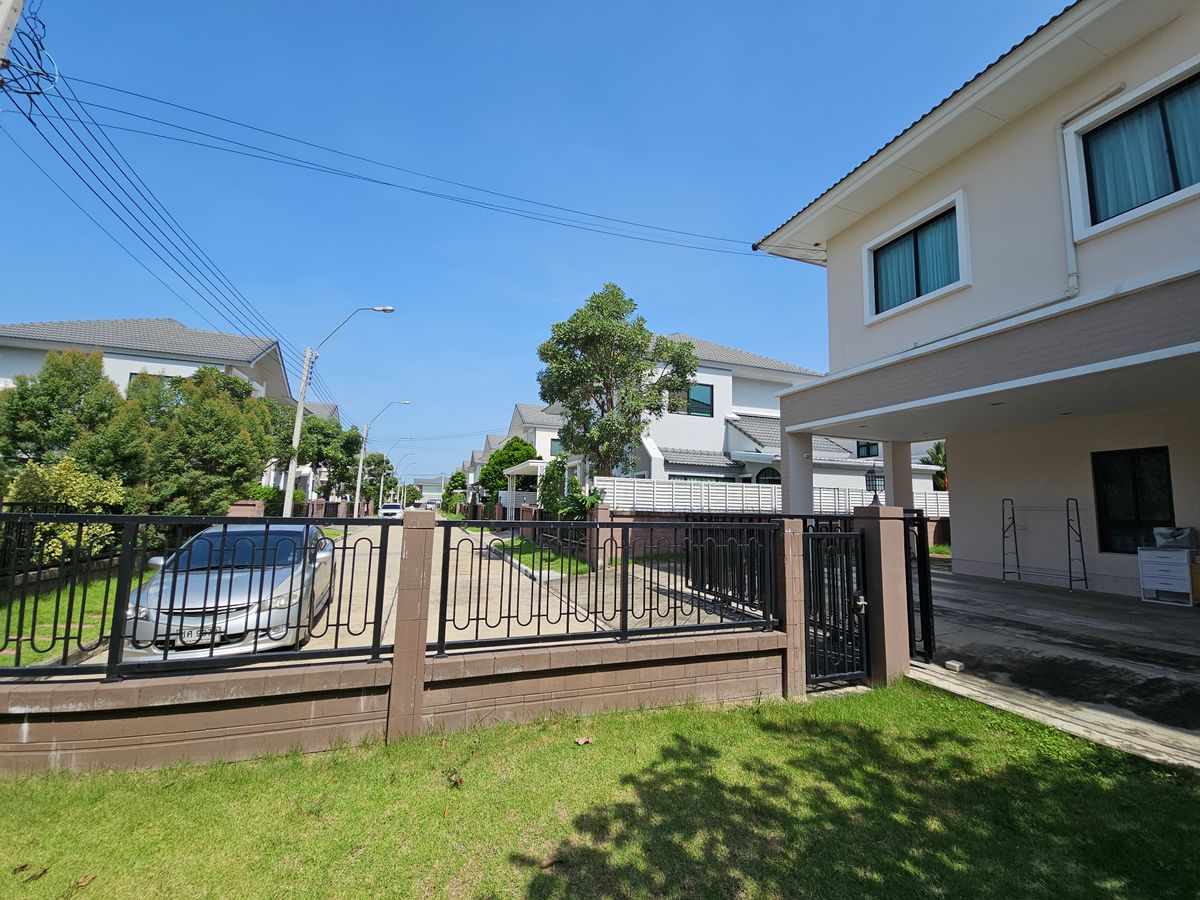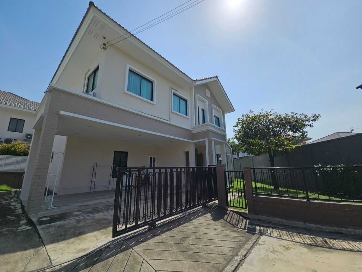 Detached house for rent, Laddarom Wongwaen - Ramintra, 113.2 sq m, inner corner house with additional space and privacy. House in original project condition. Near Chatuchot Expressway Near the MRT Pink line- Khubon Station, Rent 60 kBaht/month
