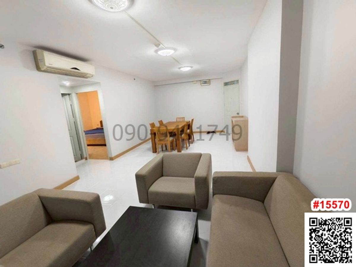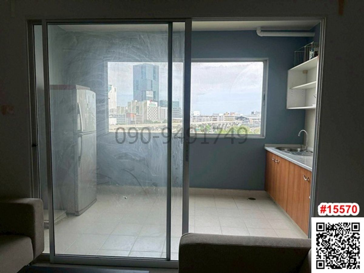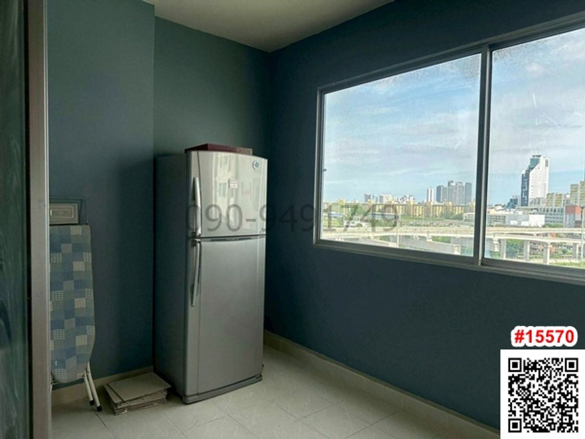 Condo for rent, Supalai Park Srinakarin, 2 bedrooms, 8th floor, near MRT Lat Phrao-Samrong #15570 2 bedrooms, 1 bathroom , 1 closed kitchen, 1 living room, and 2 balconies Building B, 8th floor, room