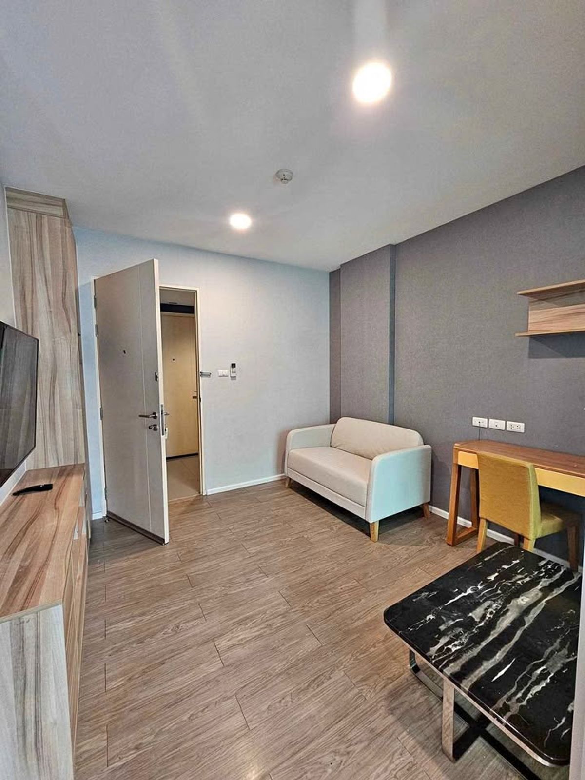 For rent: Happy Condo Don Mueang The Terminal, near Don Mueang Airport. ***Price: 8,500 baht/month (rent includes common area fees)** Contact: Tel: Contact number (Miki) Line ID: @miki_proagent (Add me too!) https://lin.ee/VeUW4bB WhatsApp: Contact number Email: Contact email FR00410 * Building B, 2nd Floor * Area: 28 sq m * 1 bedroom, 1 bathroom * Furnishings: Bed / mattress / wardrobe / sofa / built-in * Appliances: TV / air conditioner / refrigerator / water heater / microwave / washing machine * Amenities: – 1 rai common area – Sky Fitness in the clubhouse – 60 x 15 meter swimming pool – Playground – Close-range access card control – 24-hour security – Key card elevator (private floors) Nearby Places: Don Mueang Airport Rangsit University Dhurakij Pundit University Central Chaengwattana Muang Thong Thani